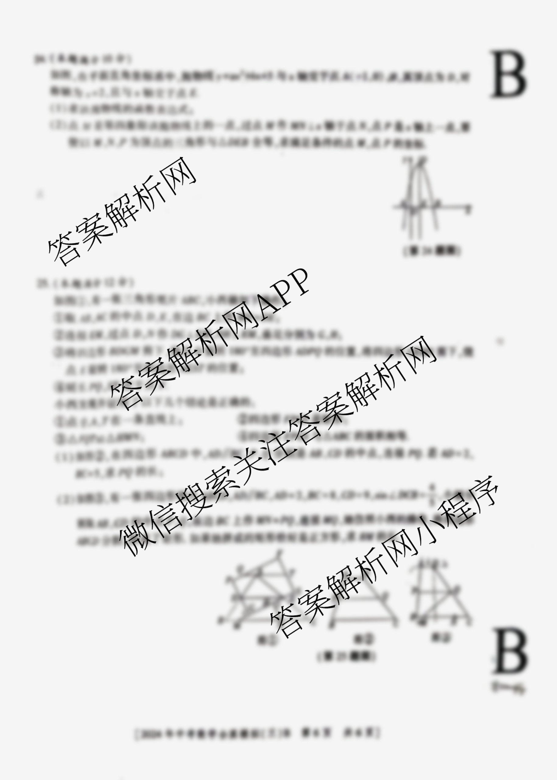 - [九年级]陕西(益卷)2024年陕西省初中学业水平考试全真模拟(三)3数学(B)试题