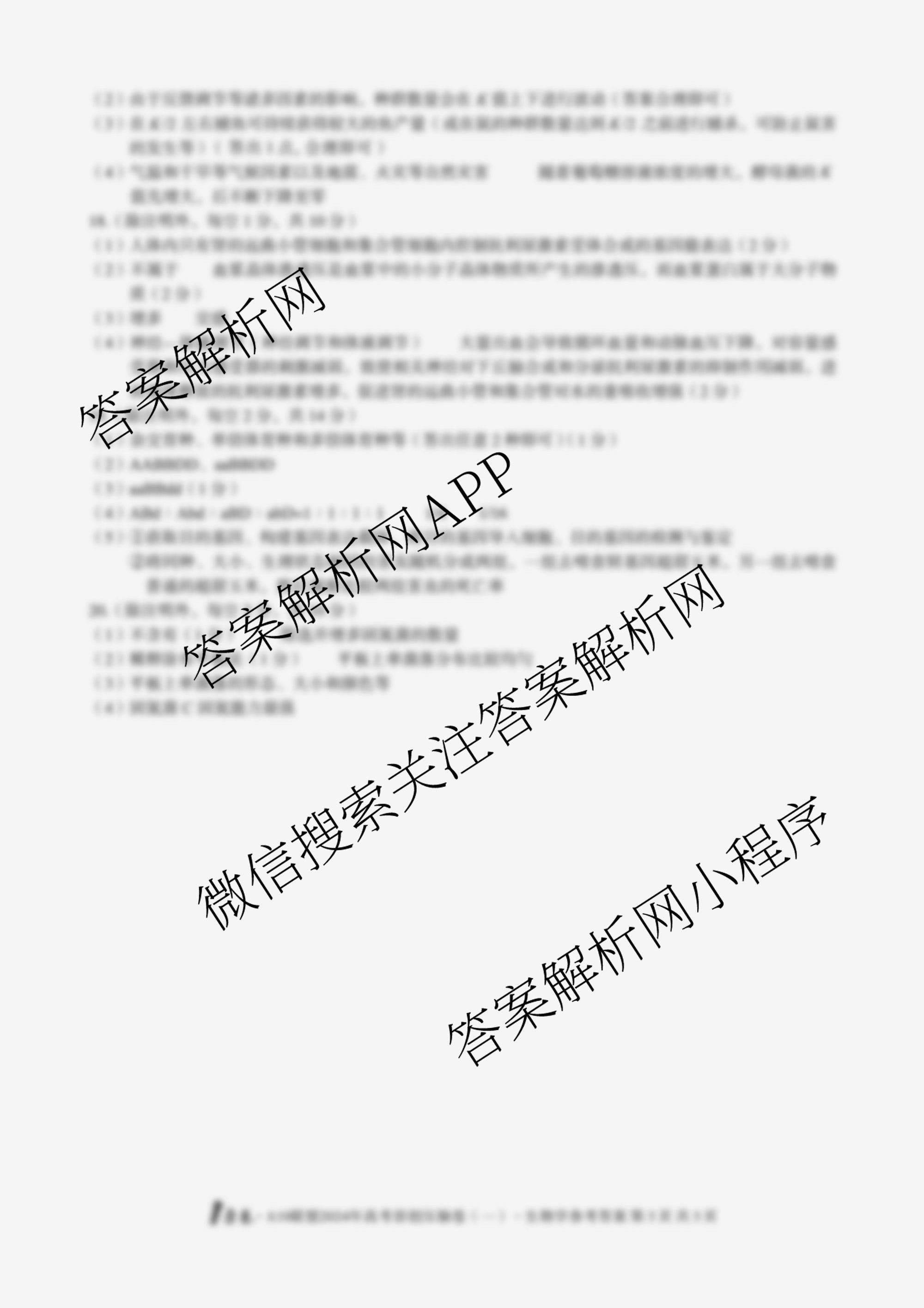 - (1号卷)·A10联盟2024年高考原创压轴卷(一)生物答案