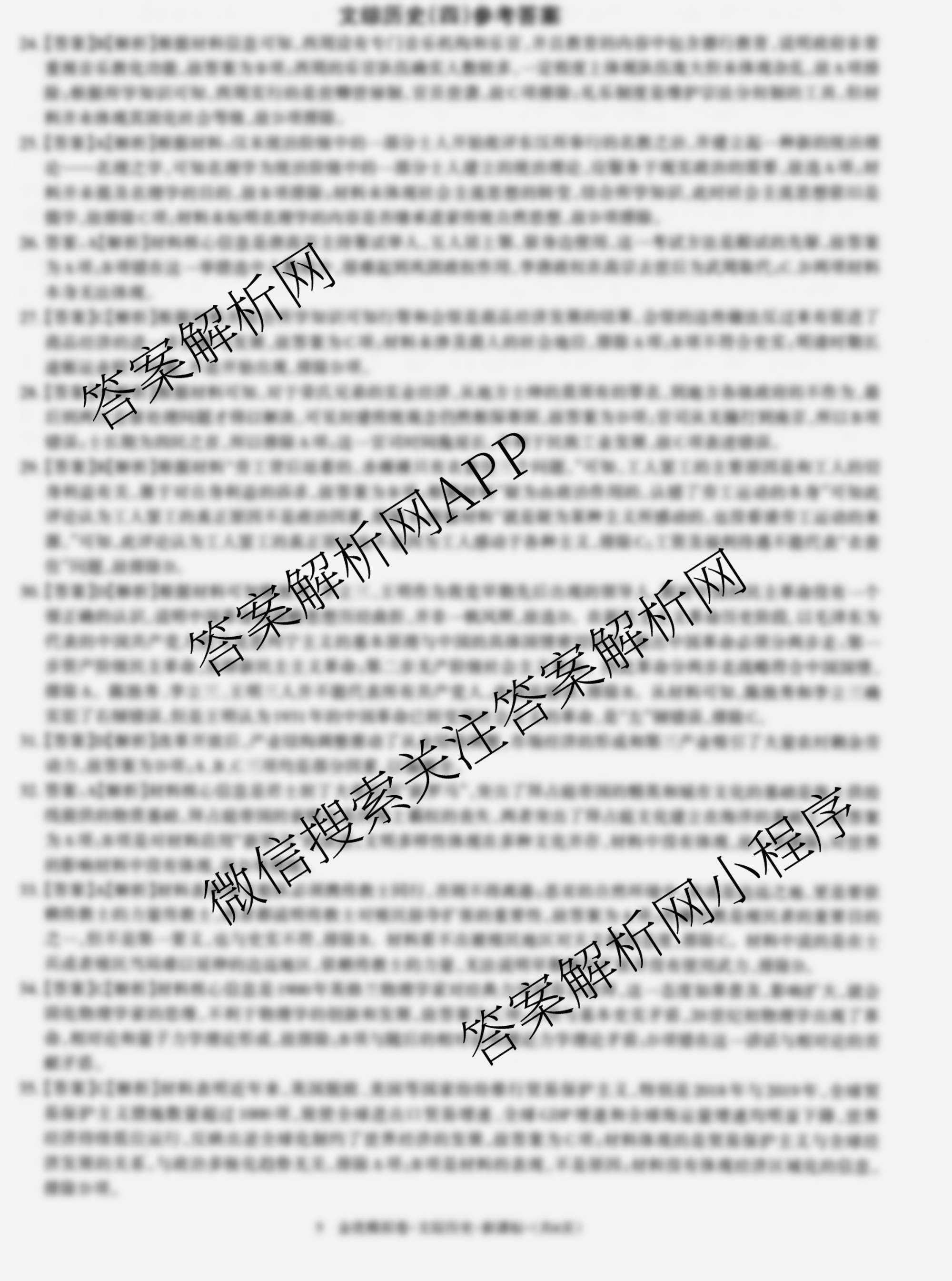 - [高三]JY模拟卷·2024安徽省新高考模拟卷历史模拟卷·(新高考·安徽)·A区专用(四)4答案