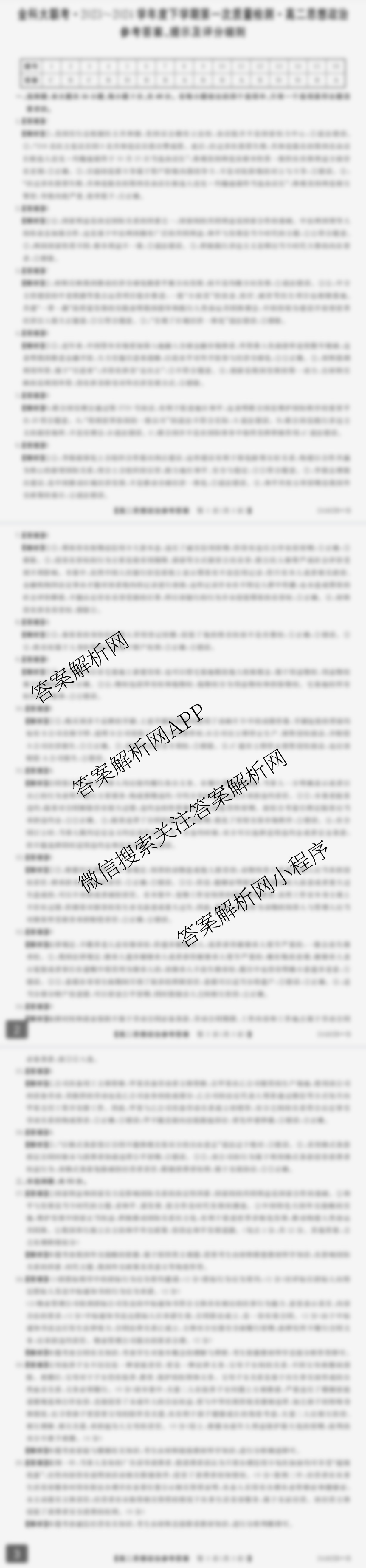 - 2024~2024(高二)[金科大联考]·学年度下学期第一次质量检测(24482B)政治(A)答案