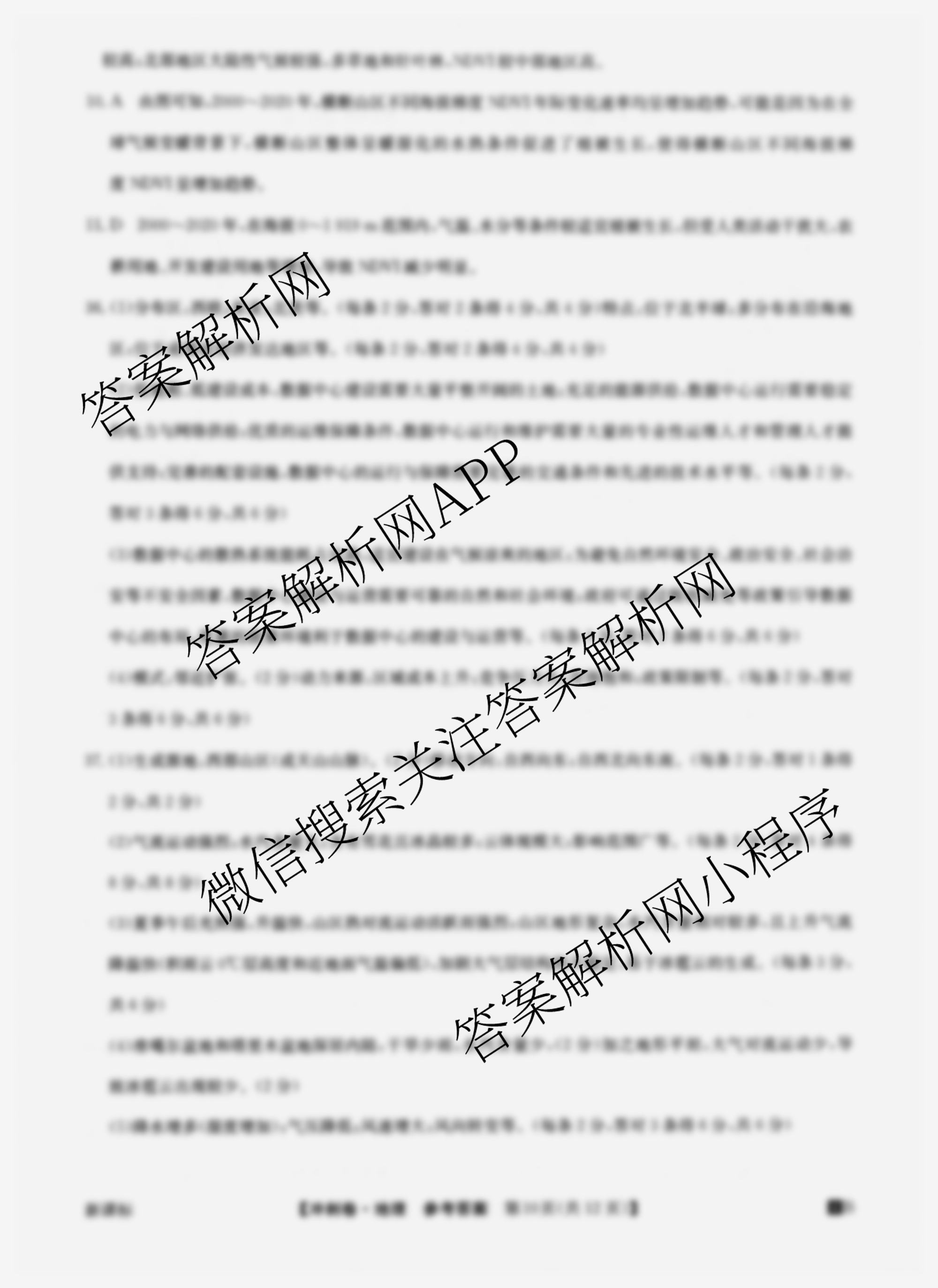 2024年全国高考冲刺压轴卷(五)5文综(新课标)答案