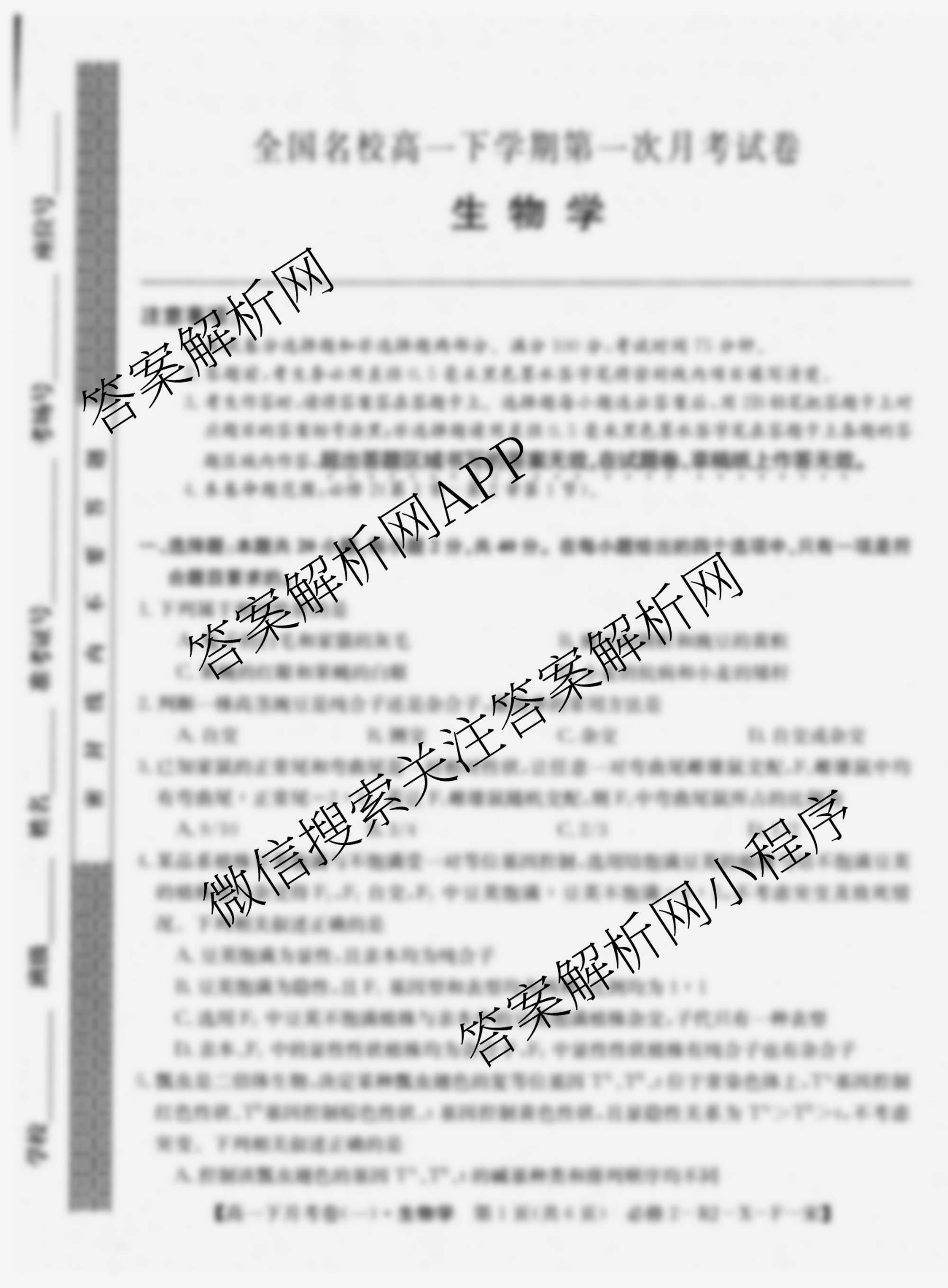 2023~2024全国名校高一下学期第一次月考试卷生物(必修2-RJ-X-F-宋)试题,目前学英语报答案已经汇总了2023~2024全国名校高一下学期第一次月考试卷生物(必修2-RJ-X-F-宋)试题的各科答案和试卷,获取更多全国名校月考试卷答案解析,请在关注本站。