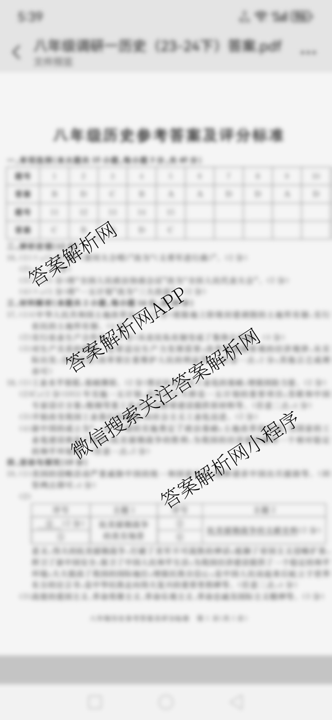 - 2023-2024[八年级]安徽省学年下学期教学质量调研一历史答案