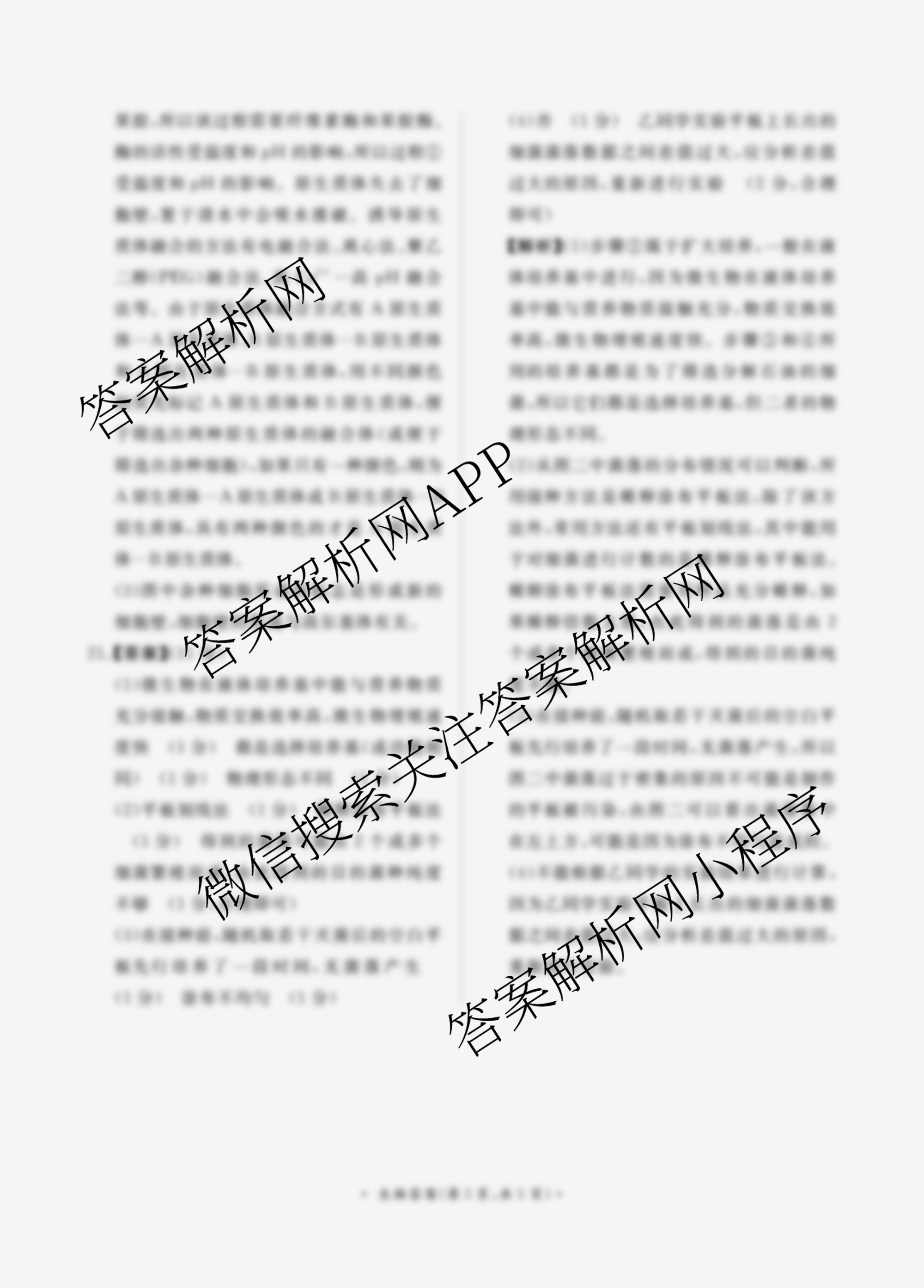 - [高二]2025届普通高等学校招生全国统一考试·青桐鸣联考(3月)生物答案