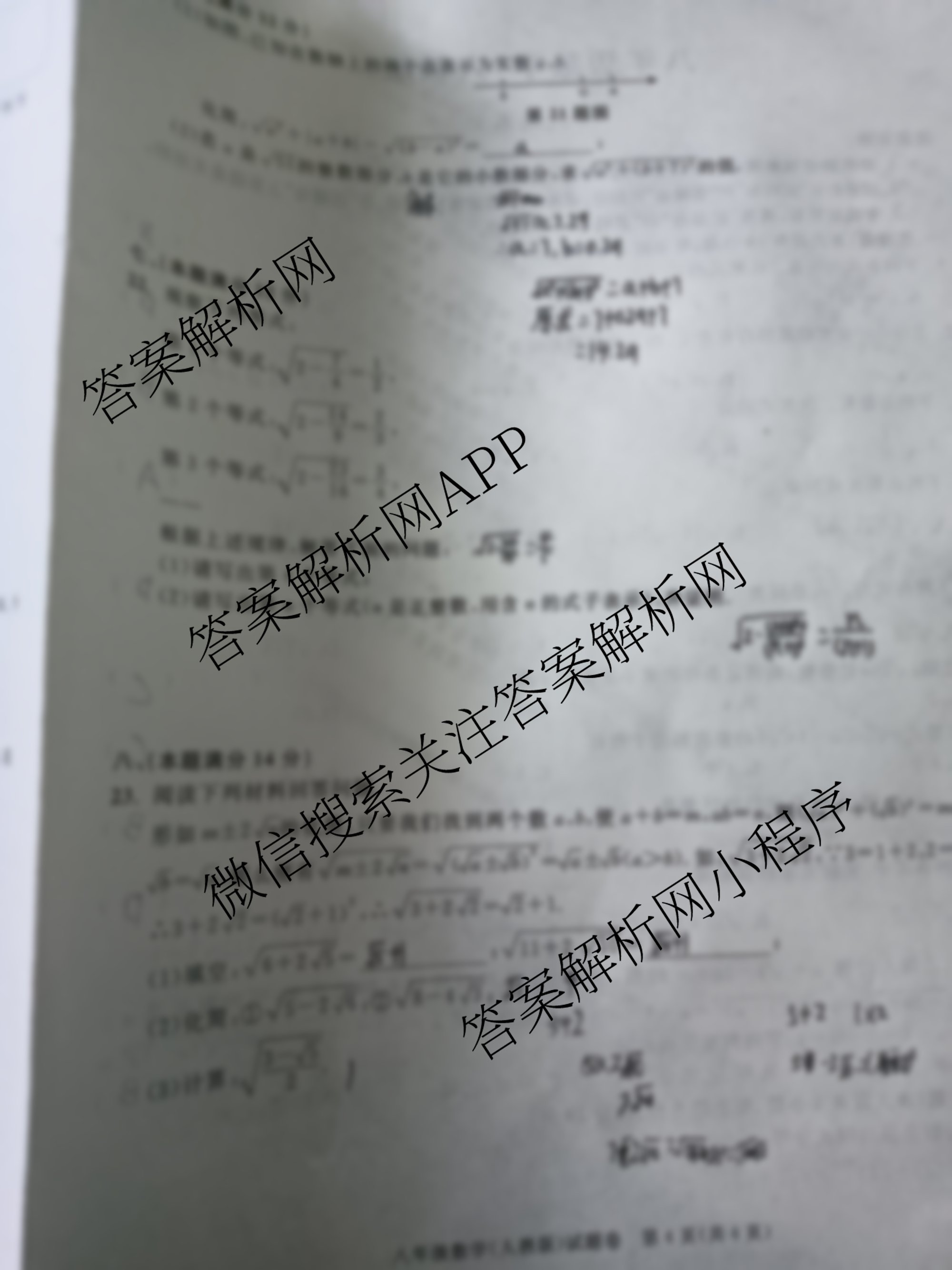 - 2023-2024[八年级]安徽省学年下学期教学质量调研一数学(北师大版)答案