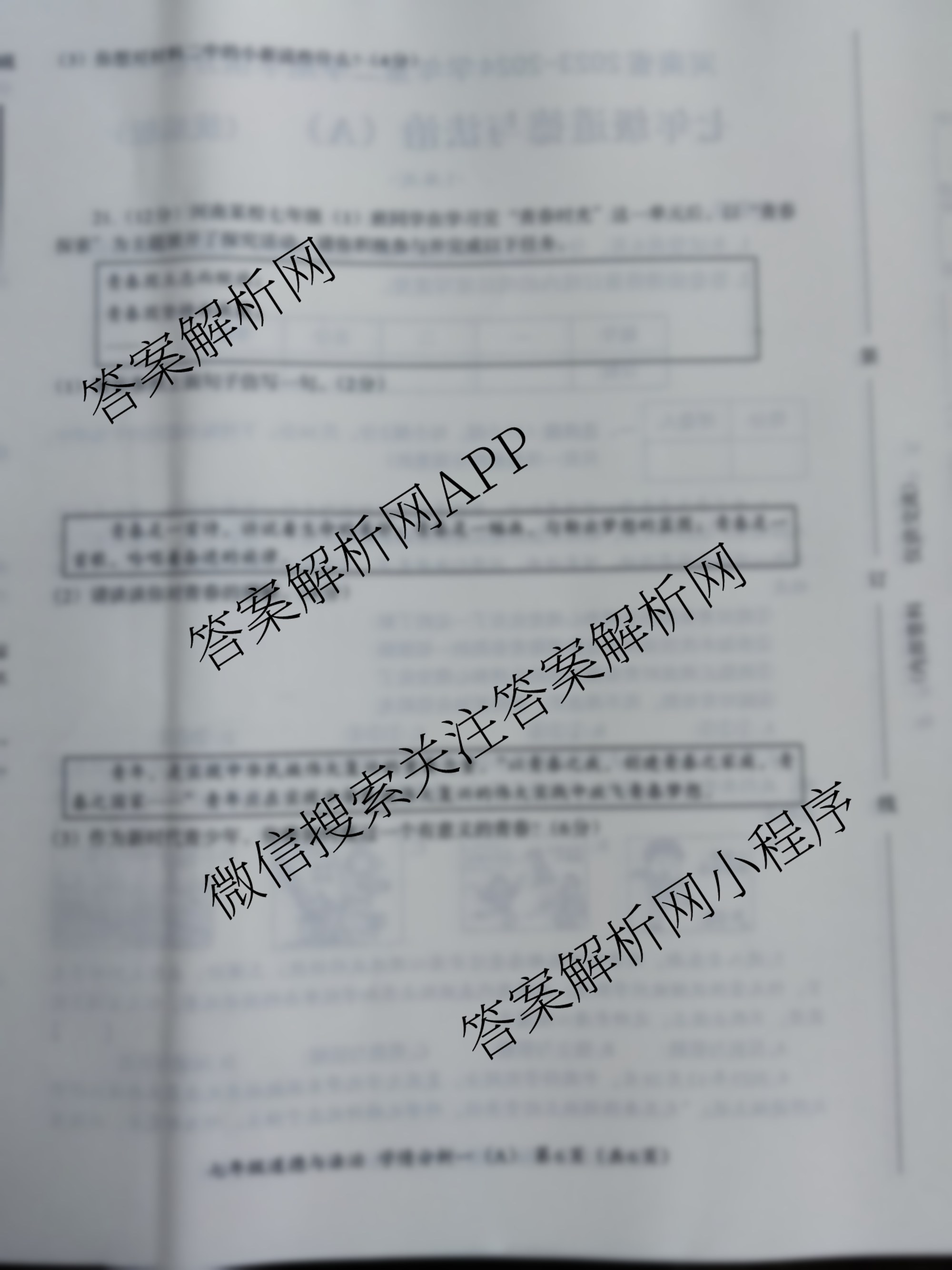 - 2023~2024河南省学年七年级第二学期学情分析一道德与法治(A 统编版)答案