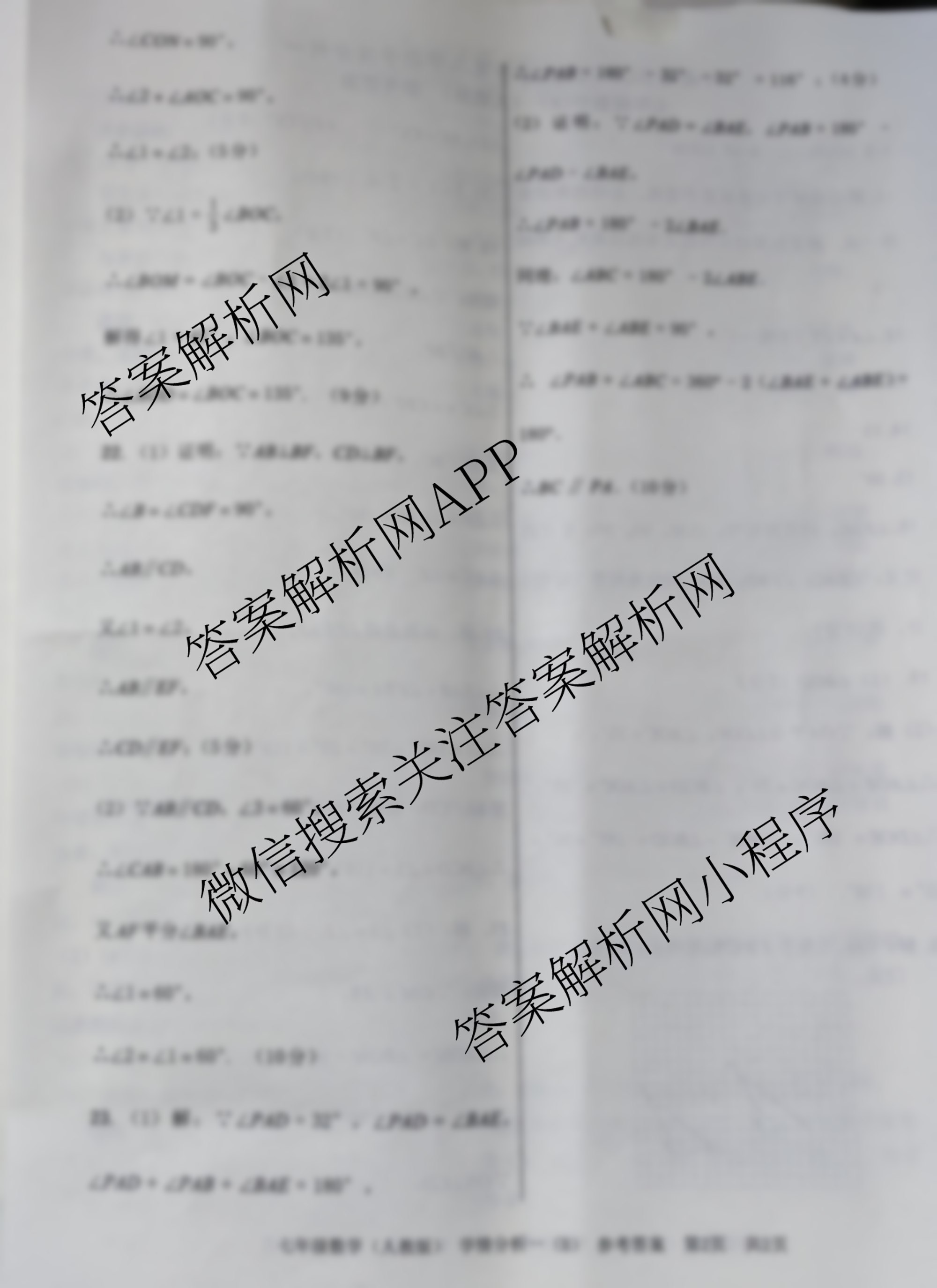 河南省2023~2024学年[七年级]第二学期学情分析一数学(B人教版)答案