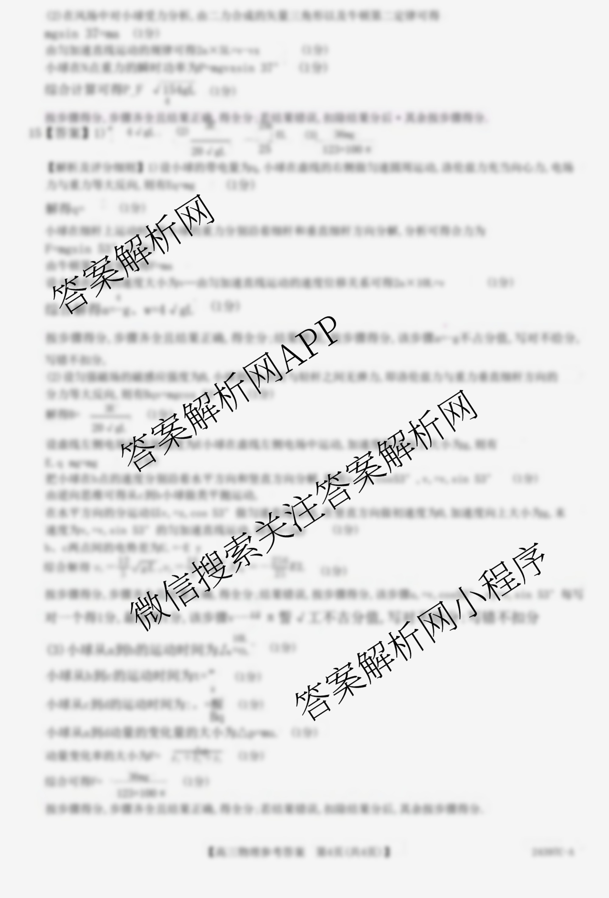 - (金科大联考)·2024届[高三]3月质量检测物理(A)答案