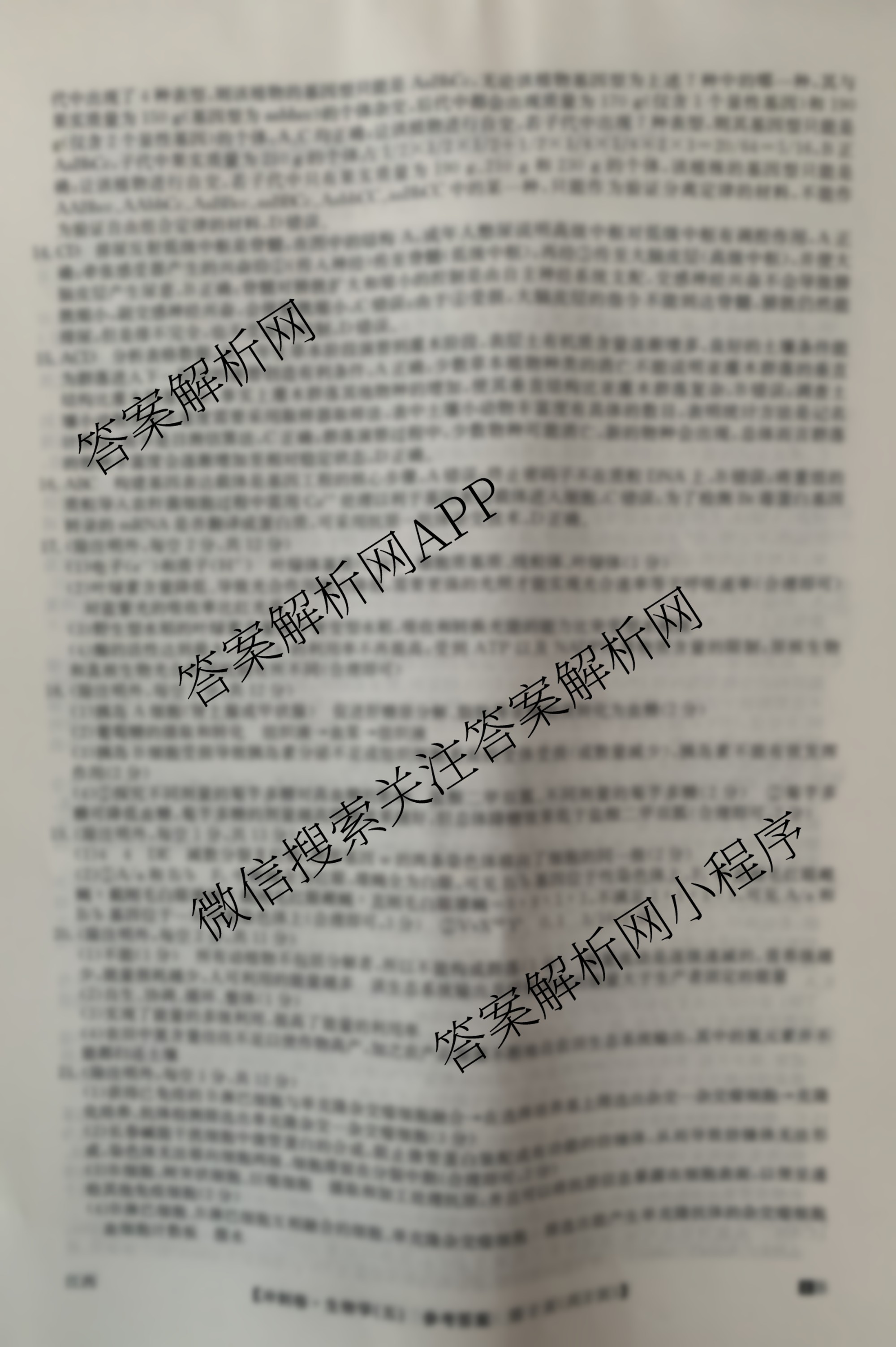 2024年江西省普通高中学业水平选择性考试冲刺压轴卷(五)生物(江西)答案