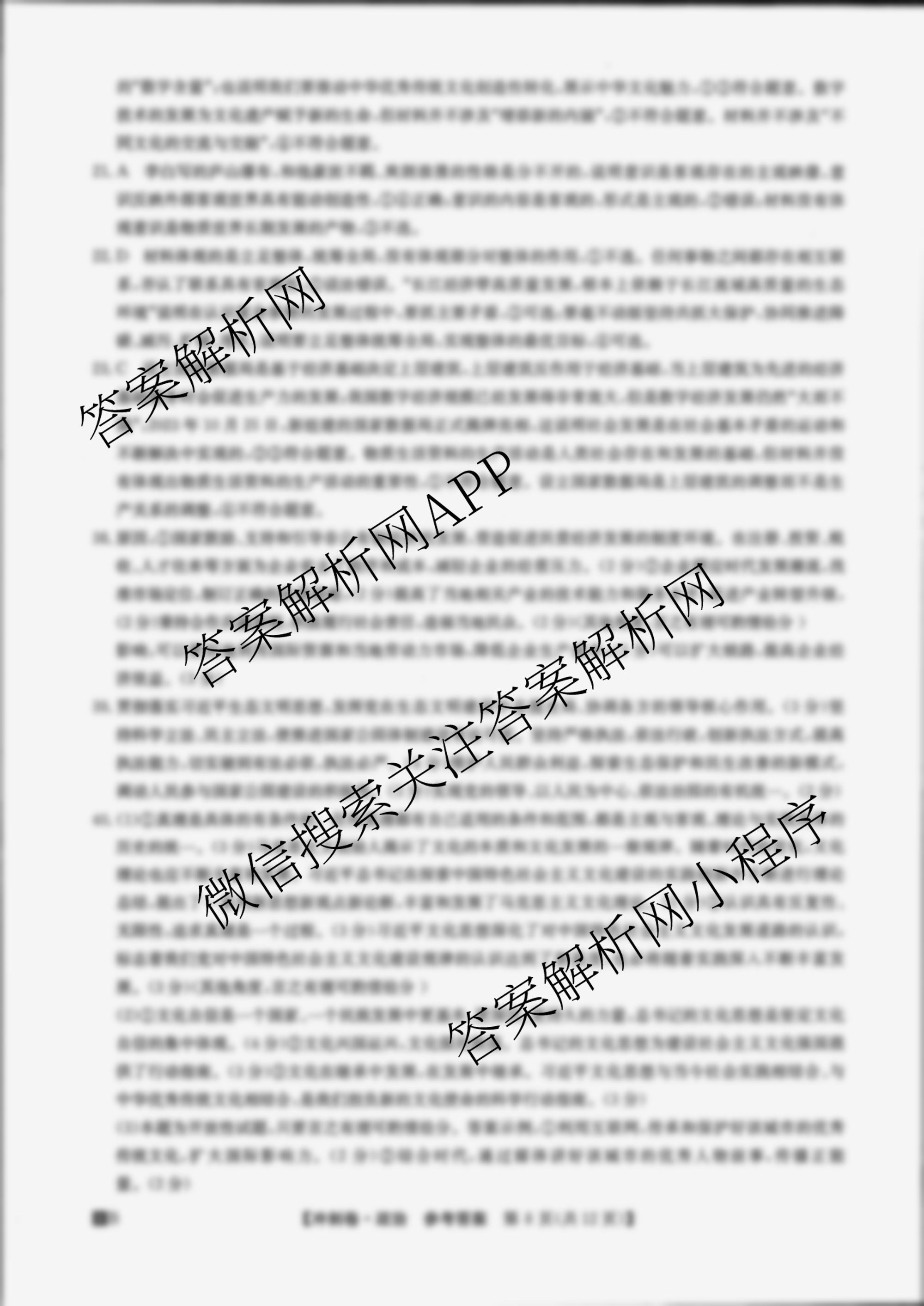 2024年[全国高考冲刺压轴卷](四)4文综(老教材)答案