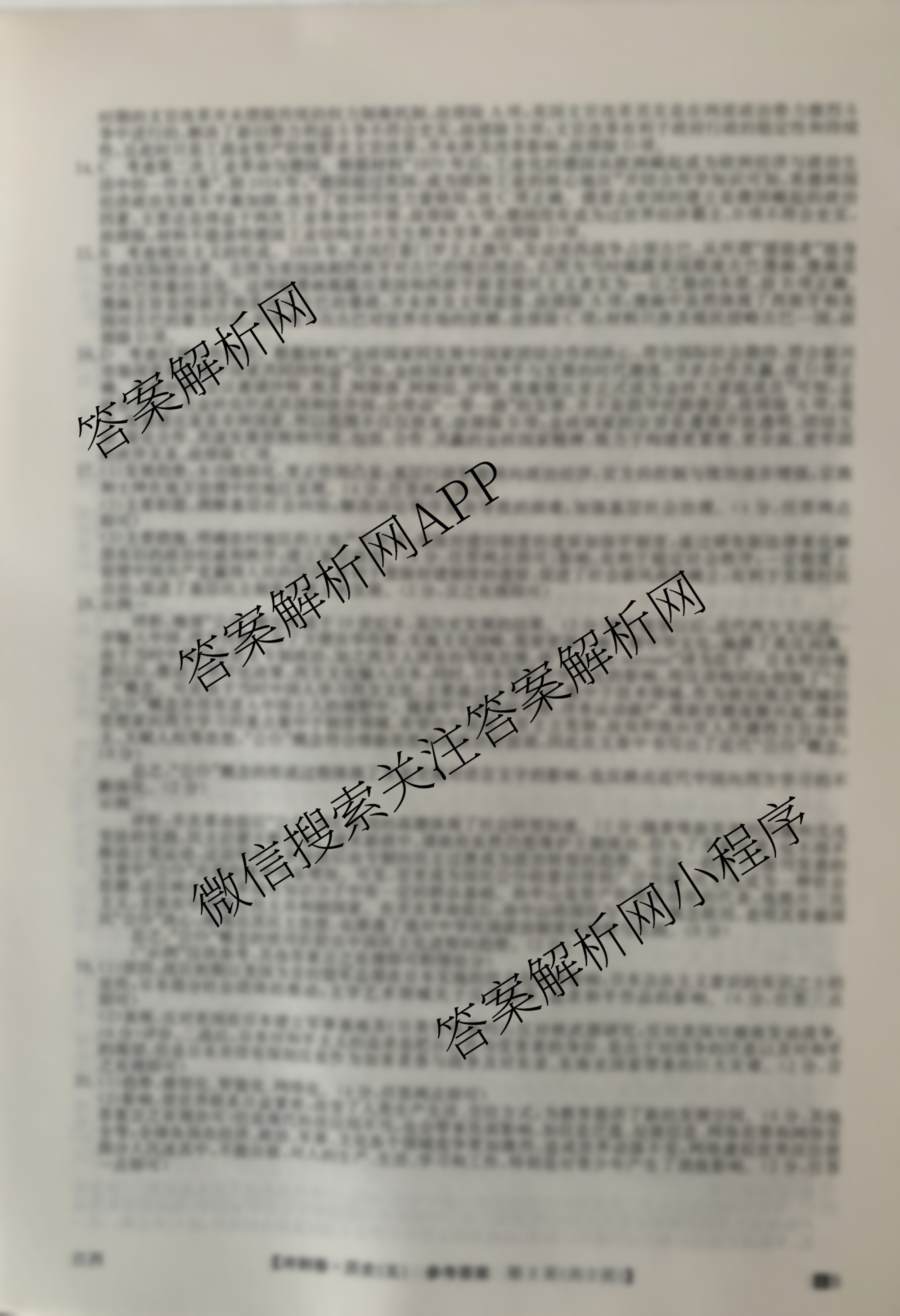 2024年江西省普通高中学业水平选择性考试冲刺压轴卷(五)历史(江西)答案