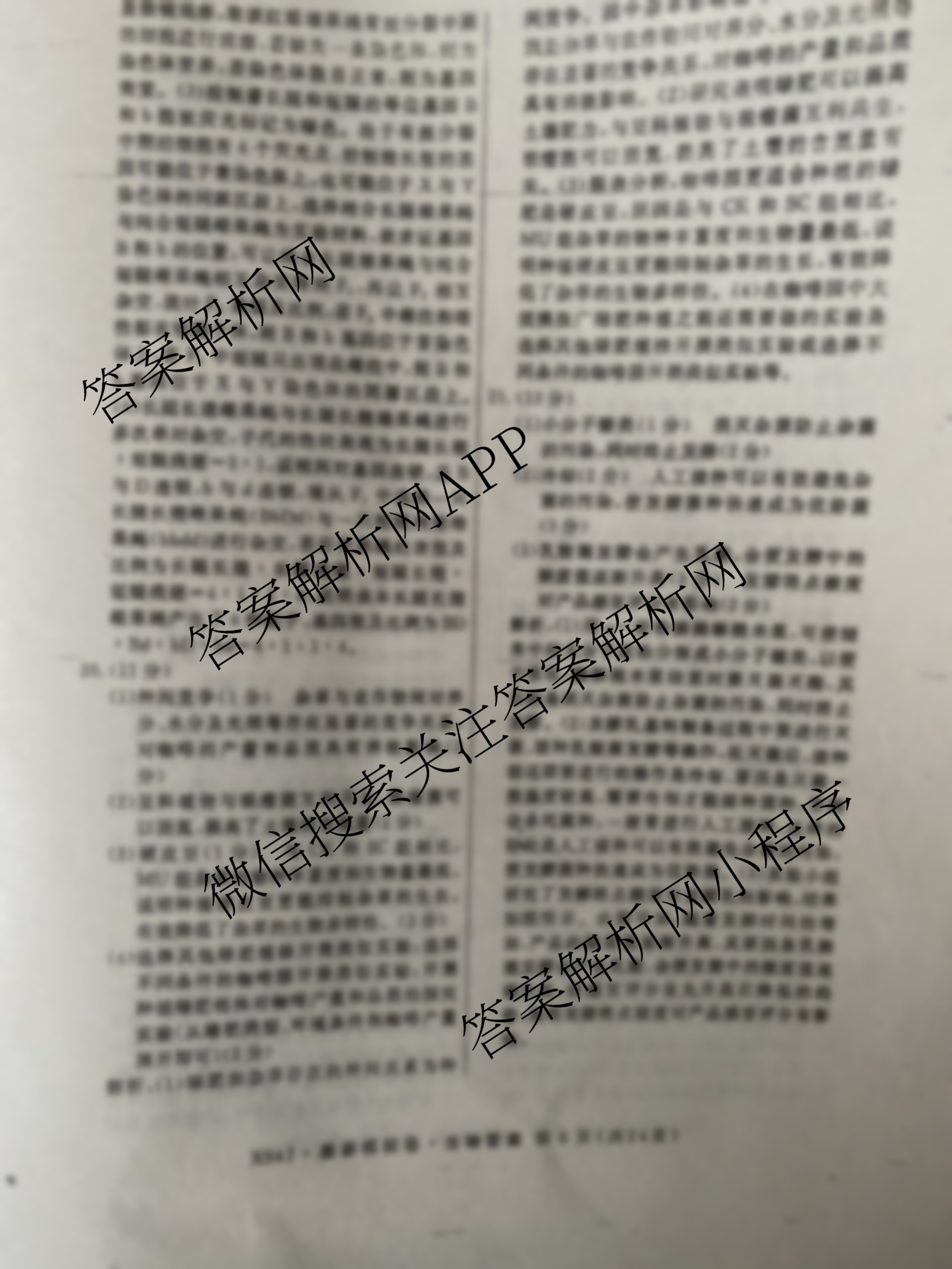 - 2024年普通高等学校招生统一考试最新模拟卷·生物(AHX4)(二)2答案