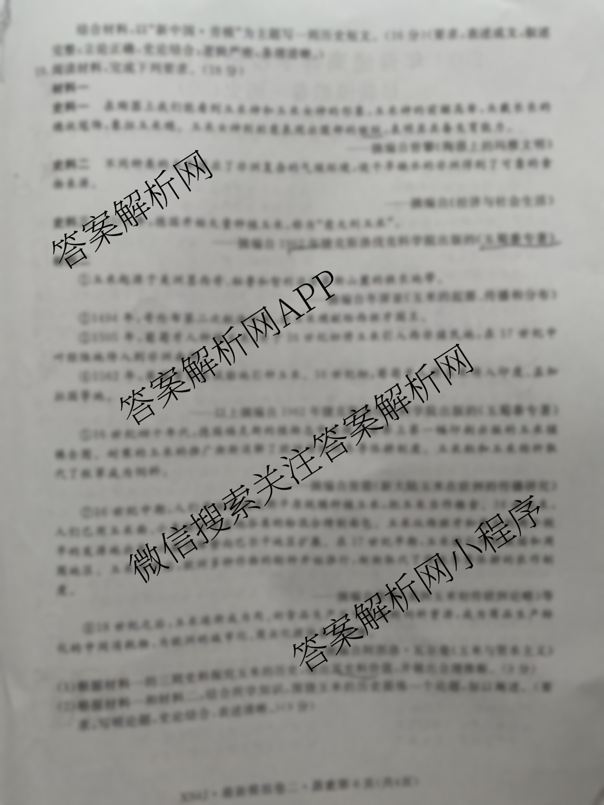 - 2024年普通高等学校招生统一考试最新模拟卷·历史(AH4)(二)2答案