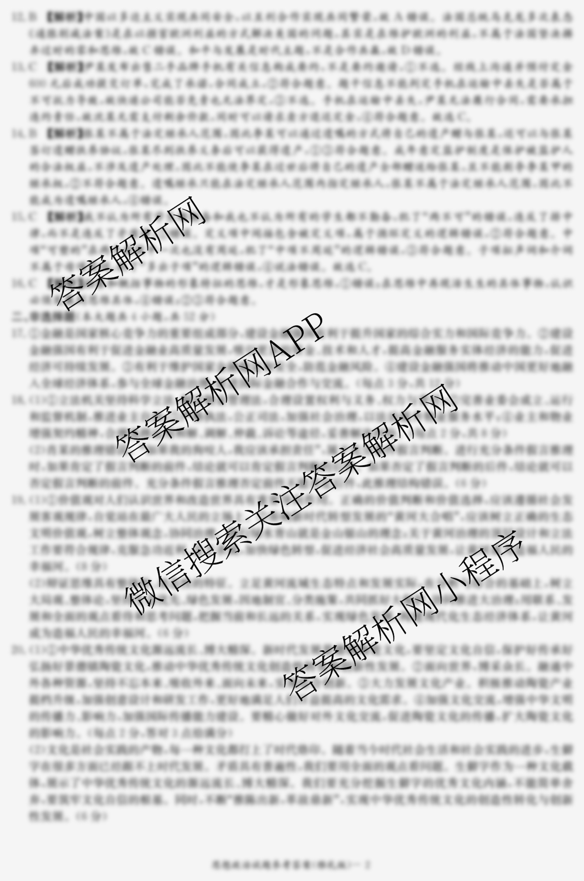 - 2024届高三(炎德英才大联考)雅礼中学月考试卷(七)政治答案