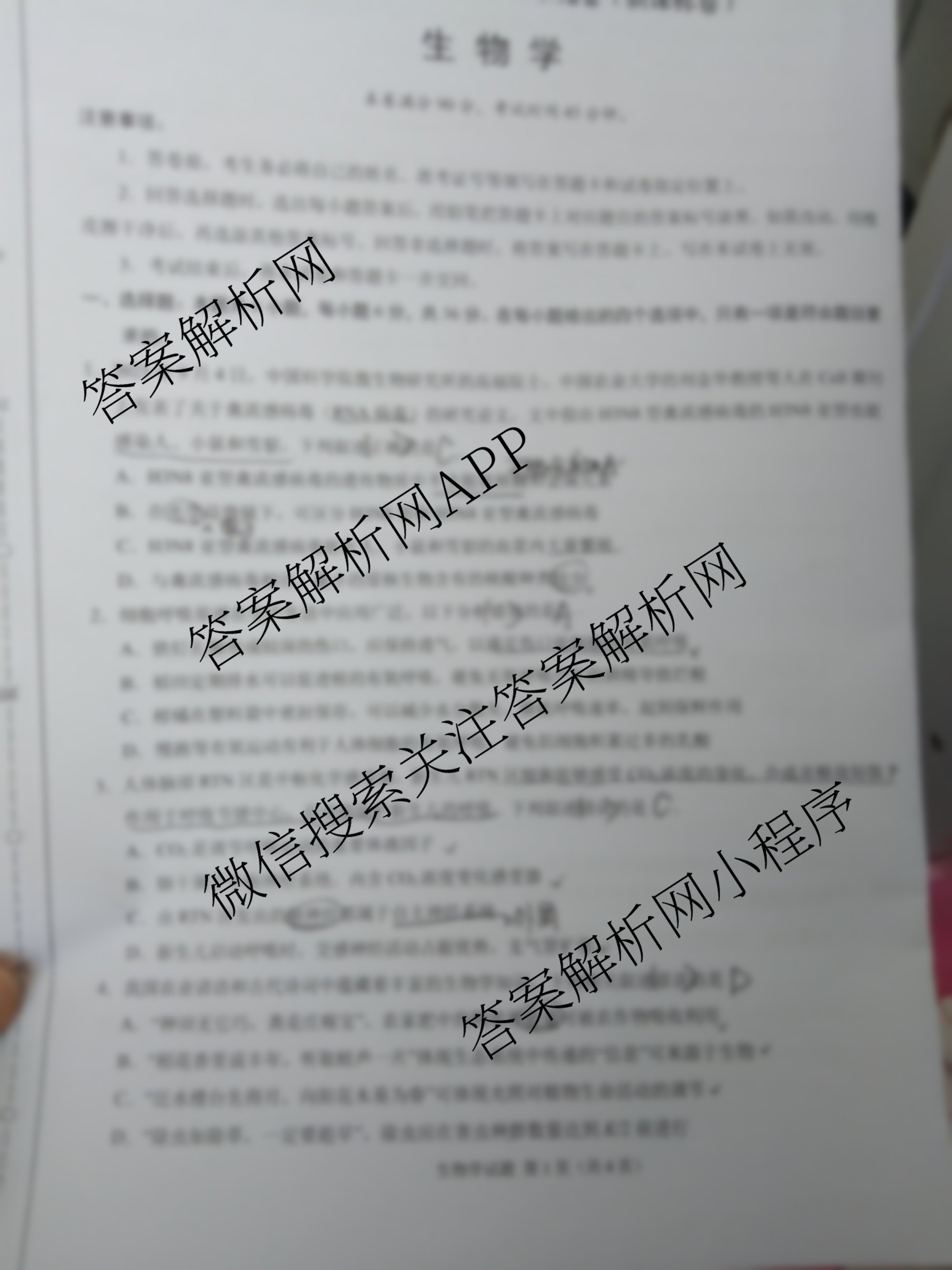 生物(全国乙卷)