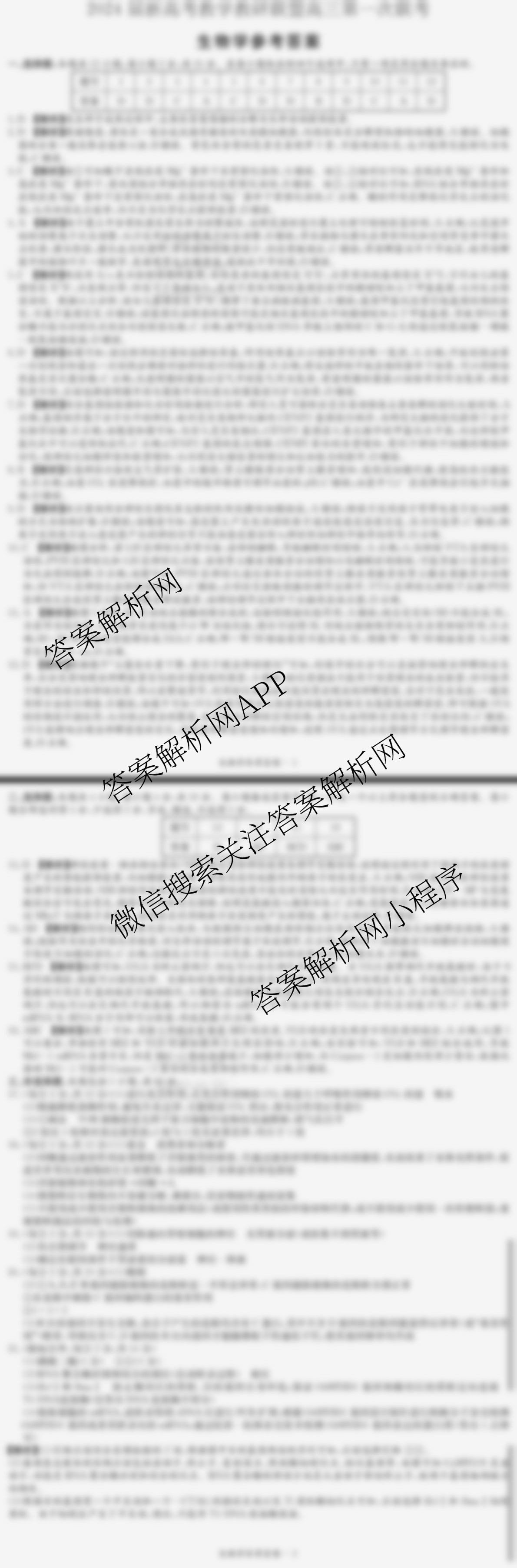 - 2024届高三新高考教学教研联盟第一次联考生物答案