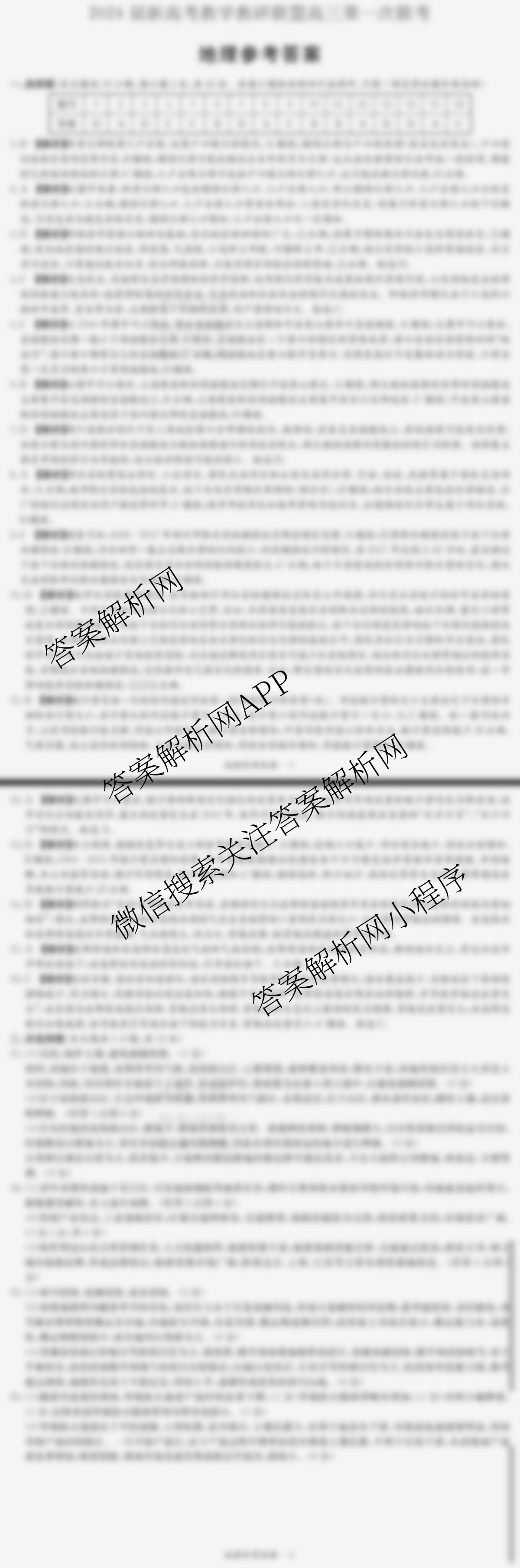 2024届新高考教学教研联盟高三第一次联考地理答案