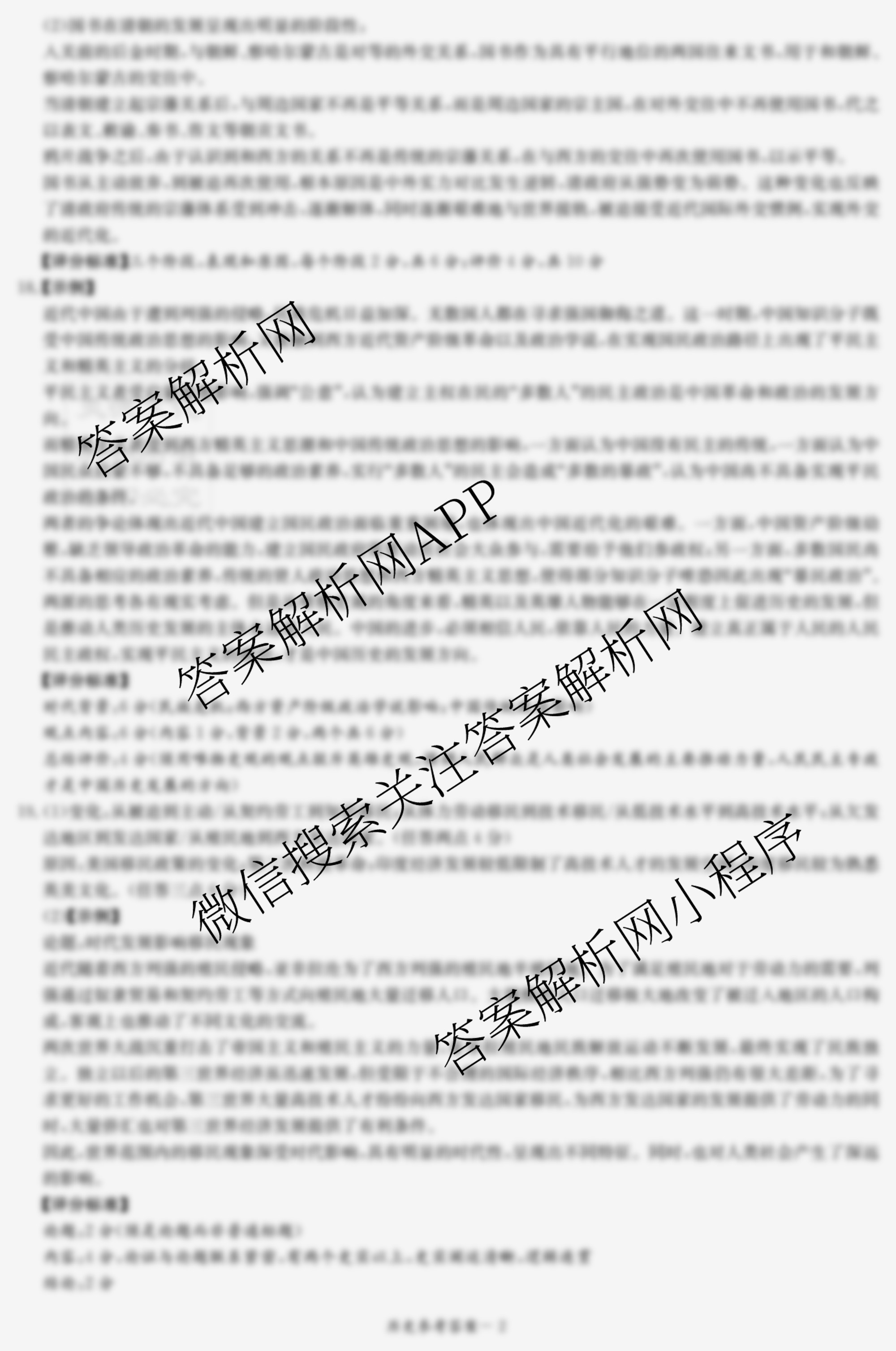 - [高三]2024届新高考教学教研联盟第一次联考历史答案