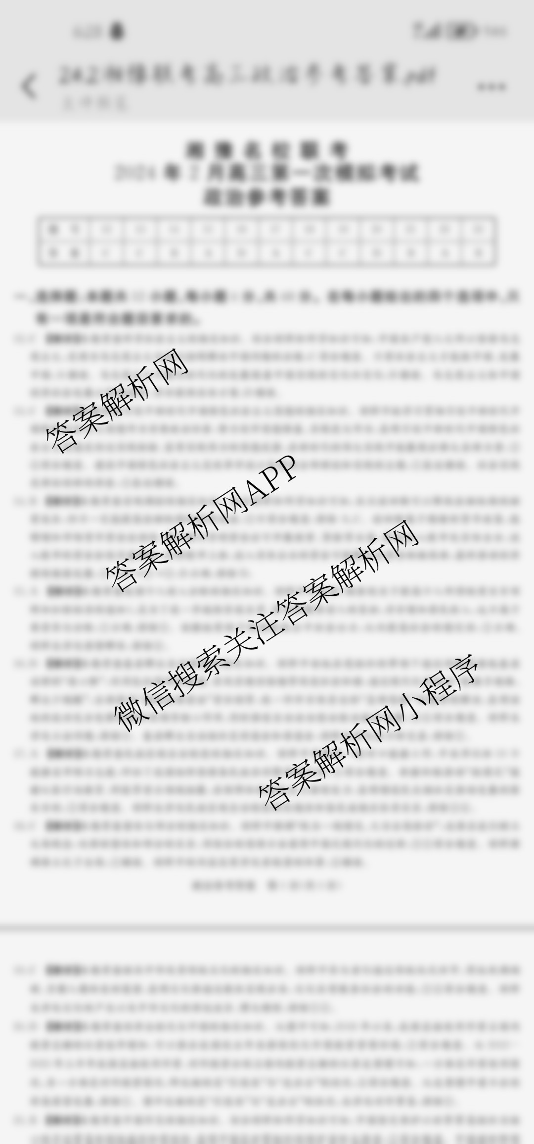 - 湘豫名校联考2024年2月[高三]第一次模拟考试政治答案