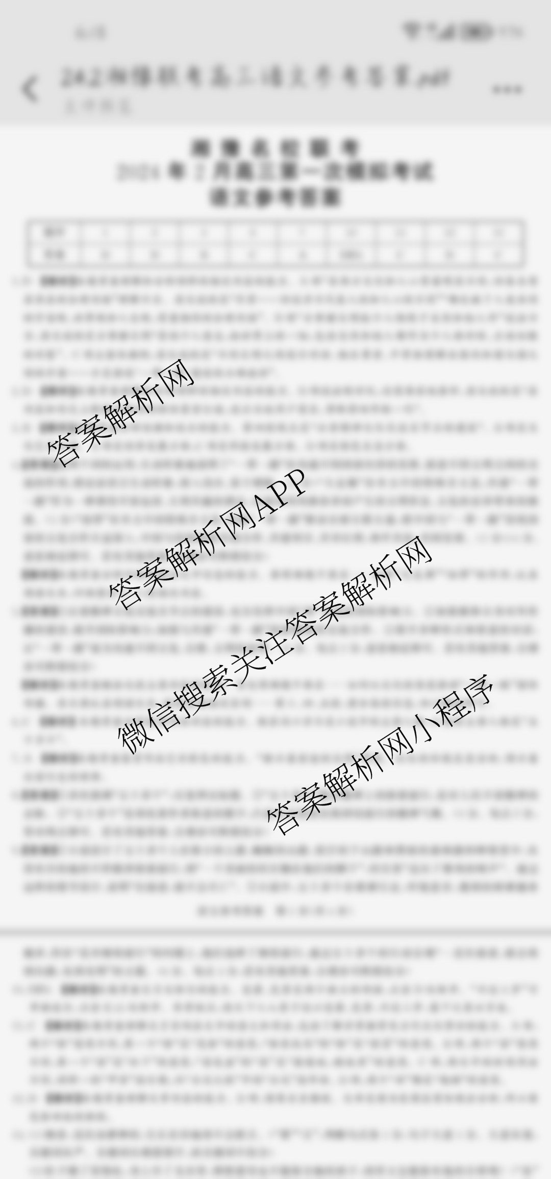 - (湘豫名校联考)2024年2月高三第一次模拟考试语文答案