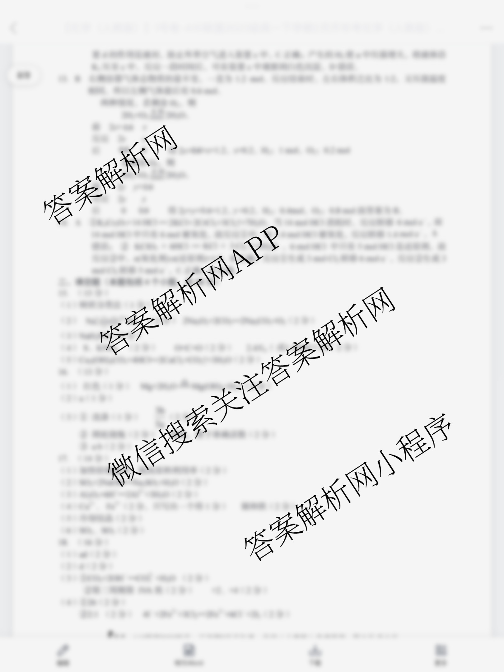 - [高一]1号卷·A10联盟2023级下学期2月开年考化学(人教版)答案