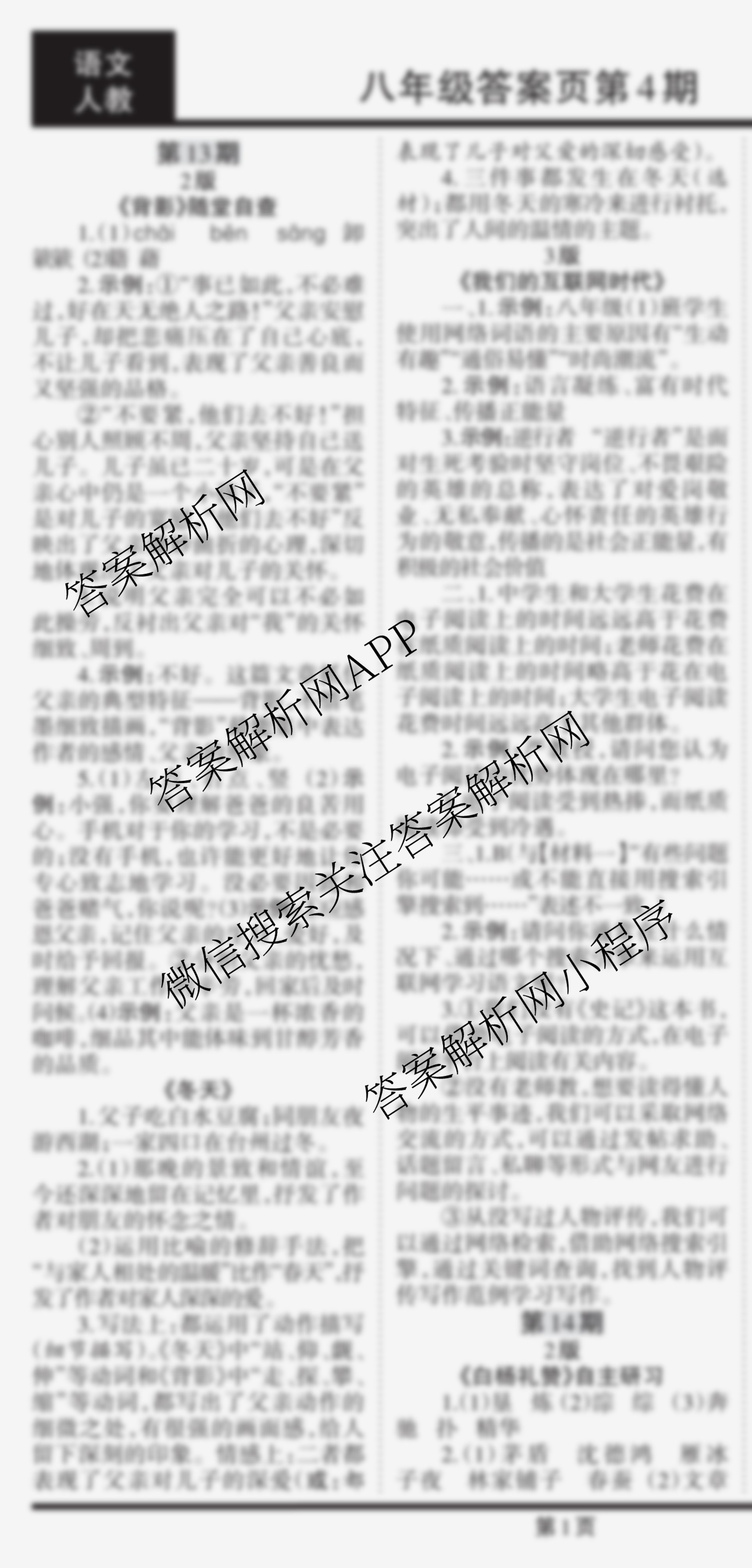 2023-2024 学习周报 语文 八年级(人教)第13期答案,目前学英语报答案已经汇总了2023-2024 学习周报 语文 八年级(人教)第13期答案的各科答案和试卷,获取更多学习周报答案解析,请在关注本站。