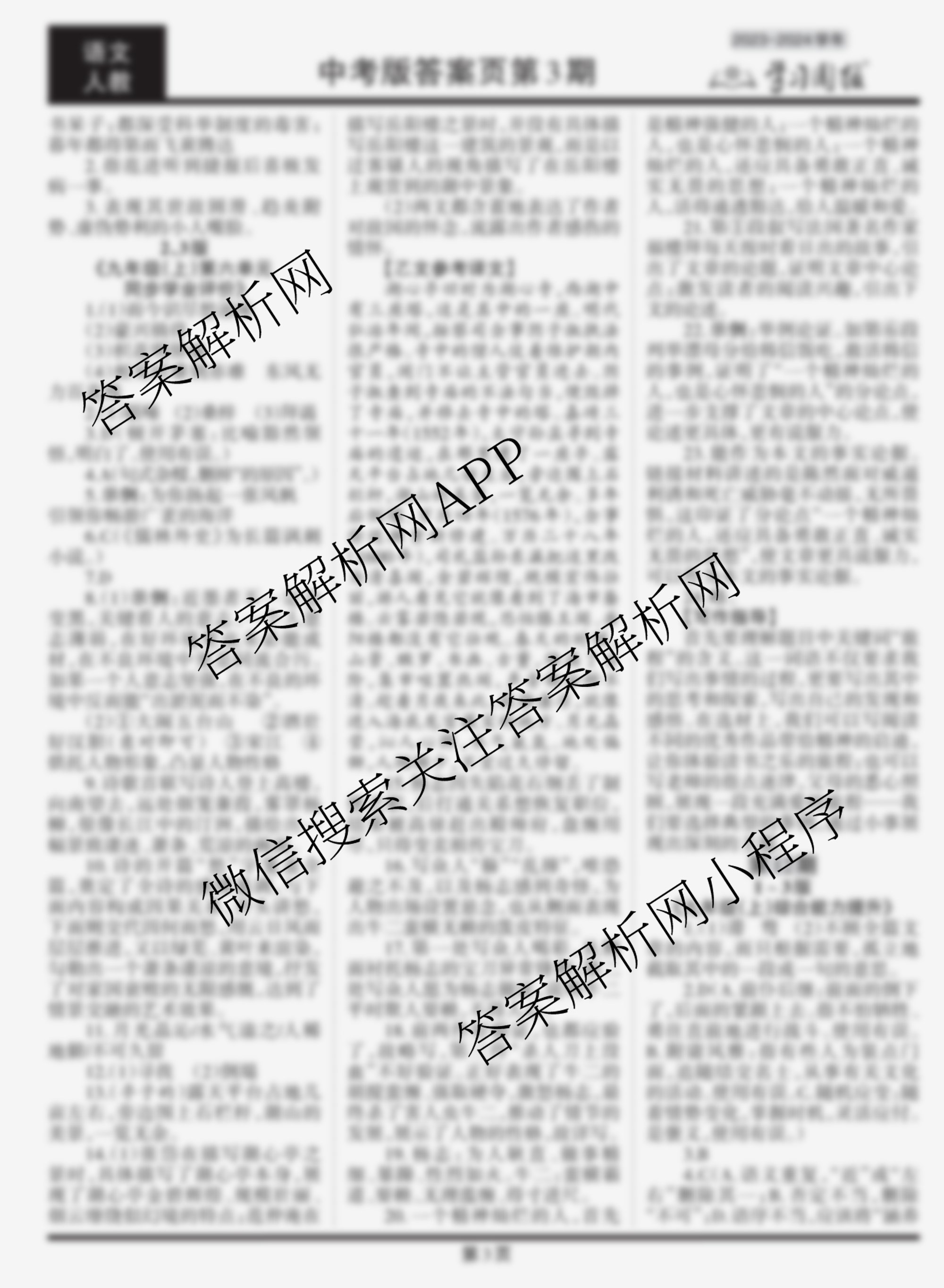 2023-2024 学习周报 语文 中考版(人教)第11期答案