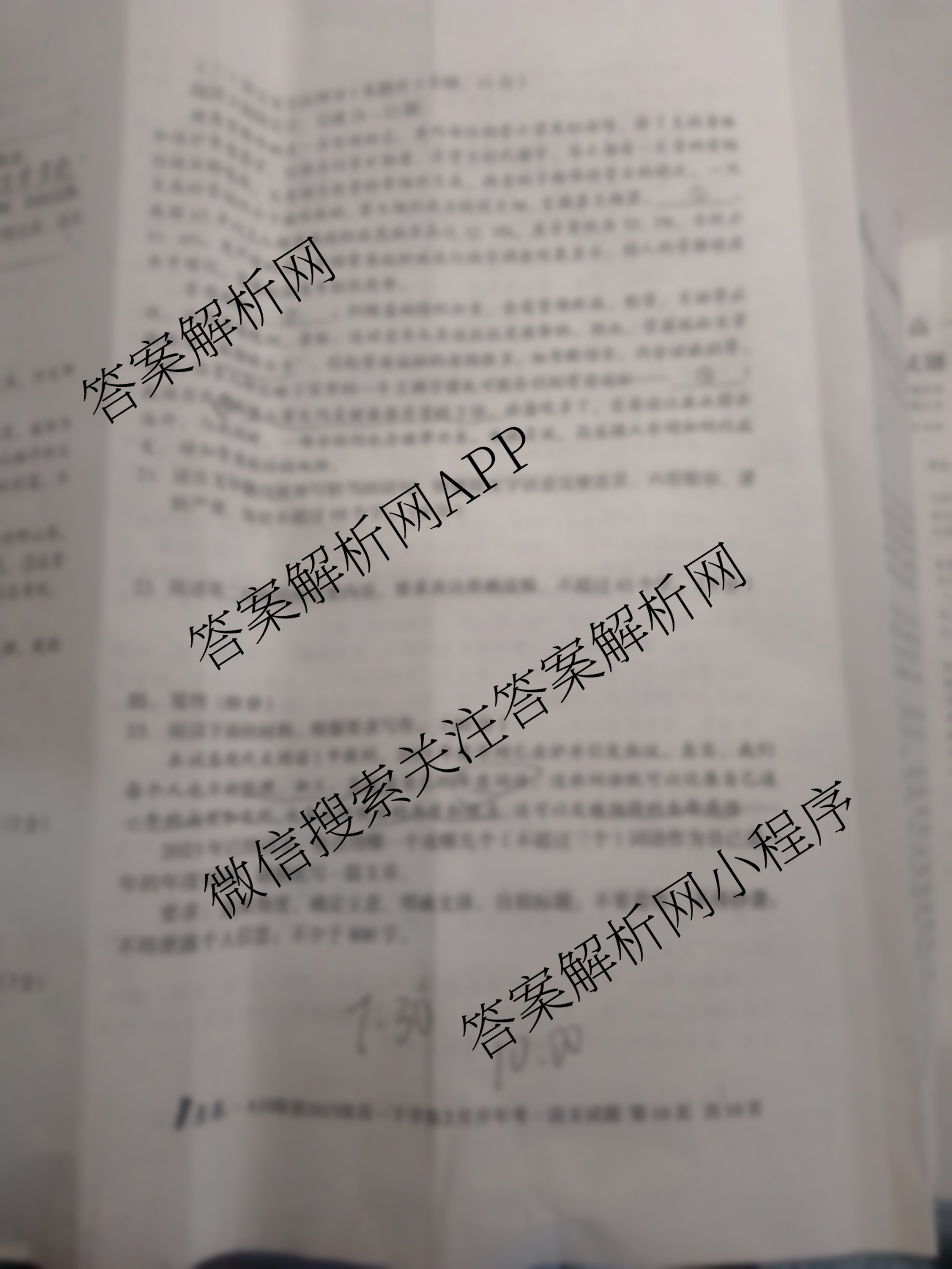 - [高一][1号卷]A10联盟2023级下学期2月开年考语文答案