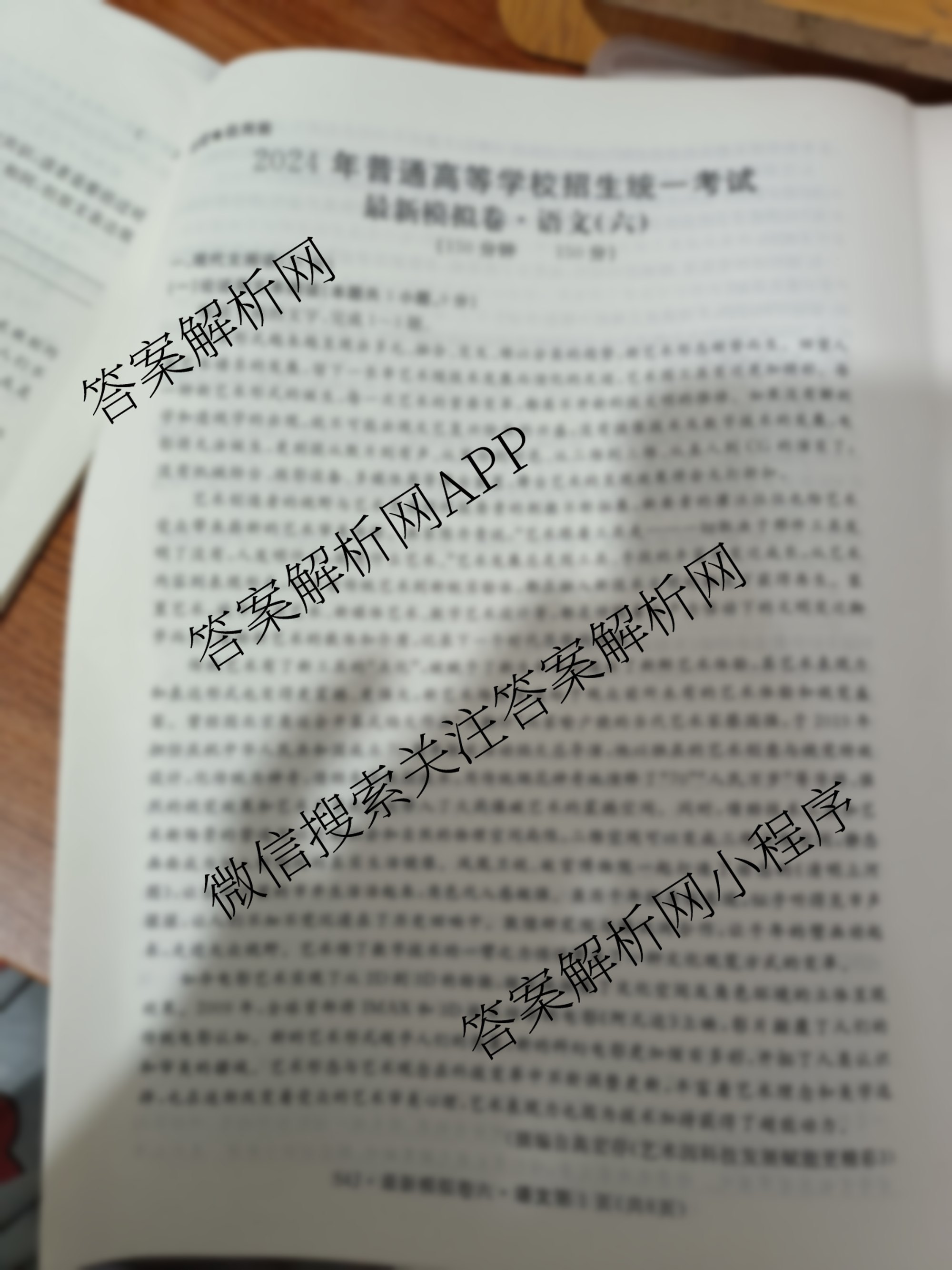 - 2024年普通高等学校招生统一考试最新模拟卷·语文(S4G)(六)6答案