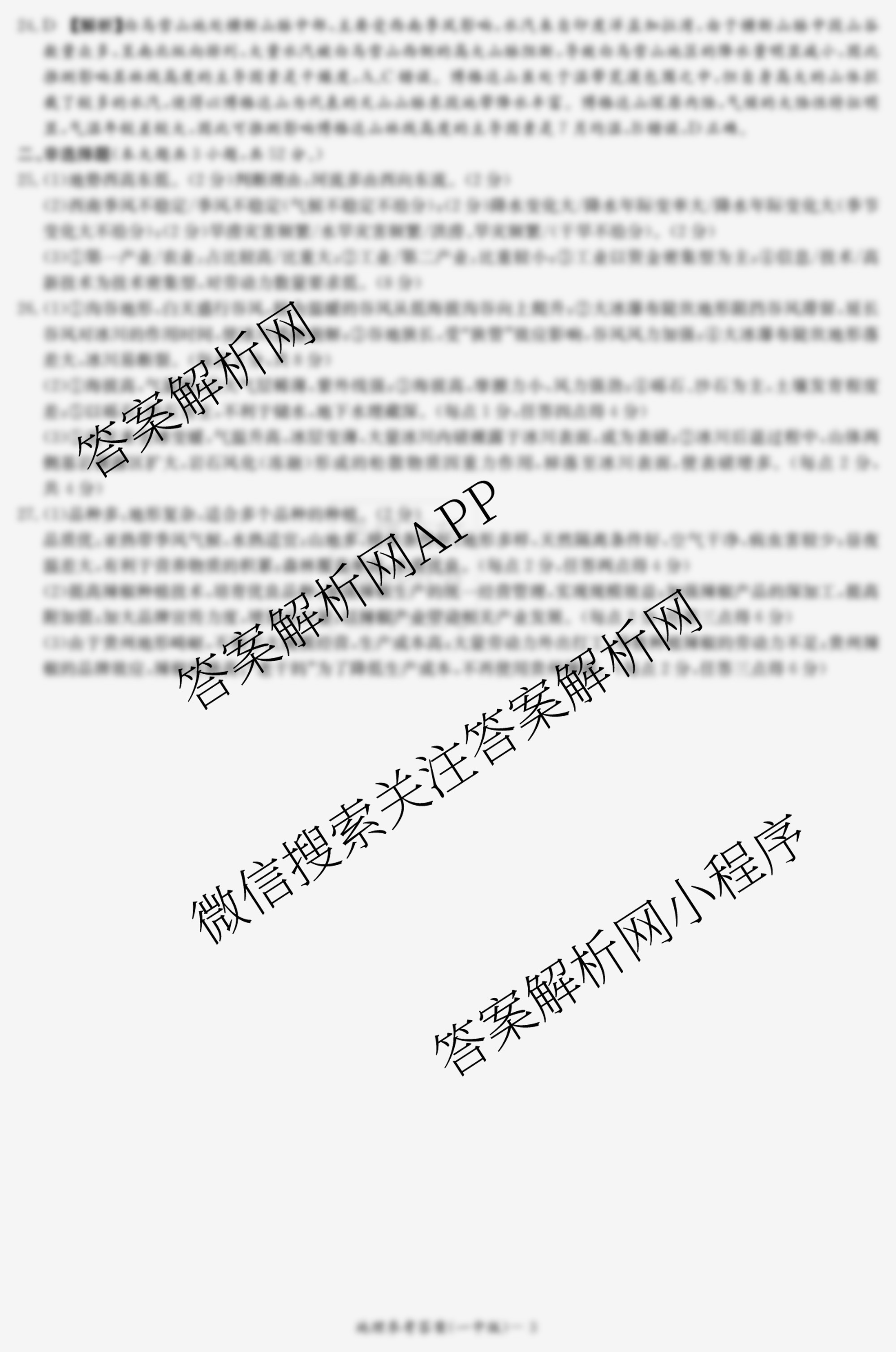 - 2024届(炎德英才大联考)长沙市一中高三学生自主检测试卷地理答案