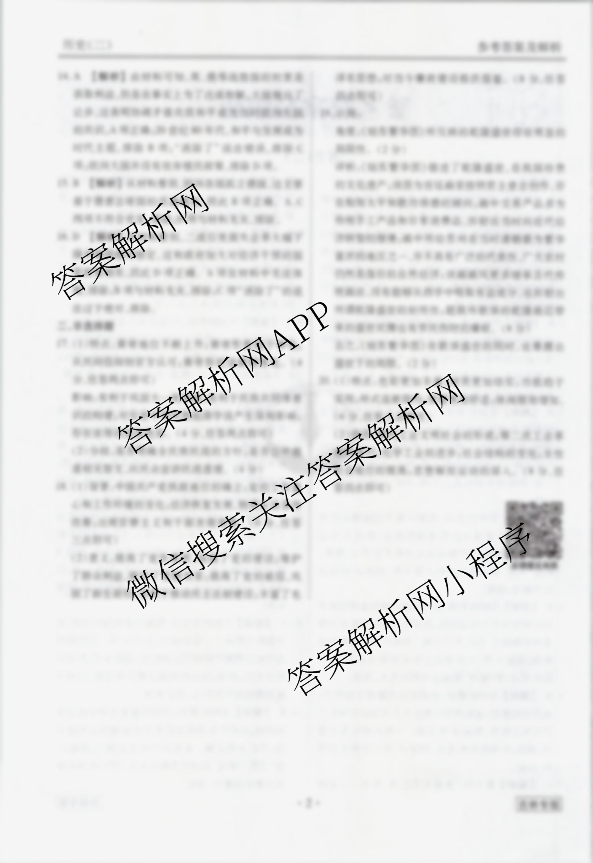 - [衡水金卷先享题]调研卷 2024年普通高等学校招生全国统一考试模拟试题(二)2历史(新教材)答案