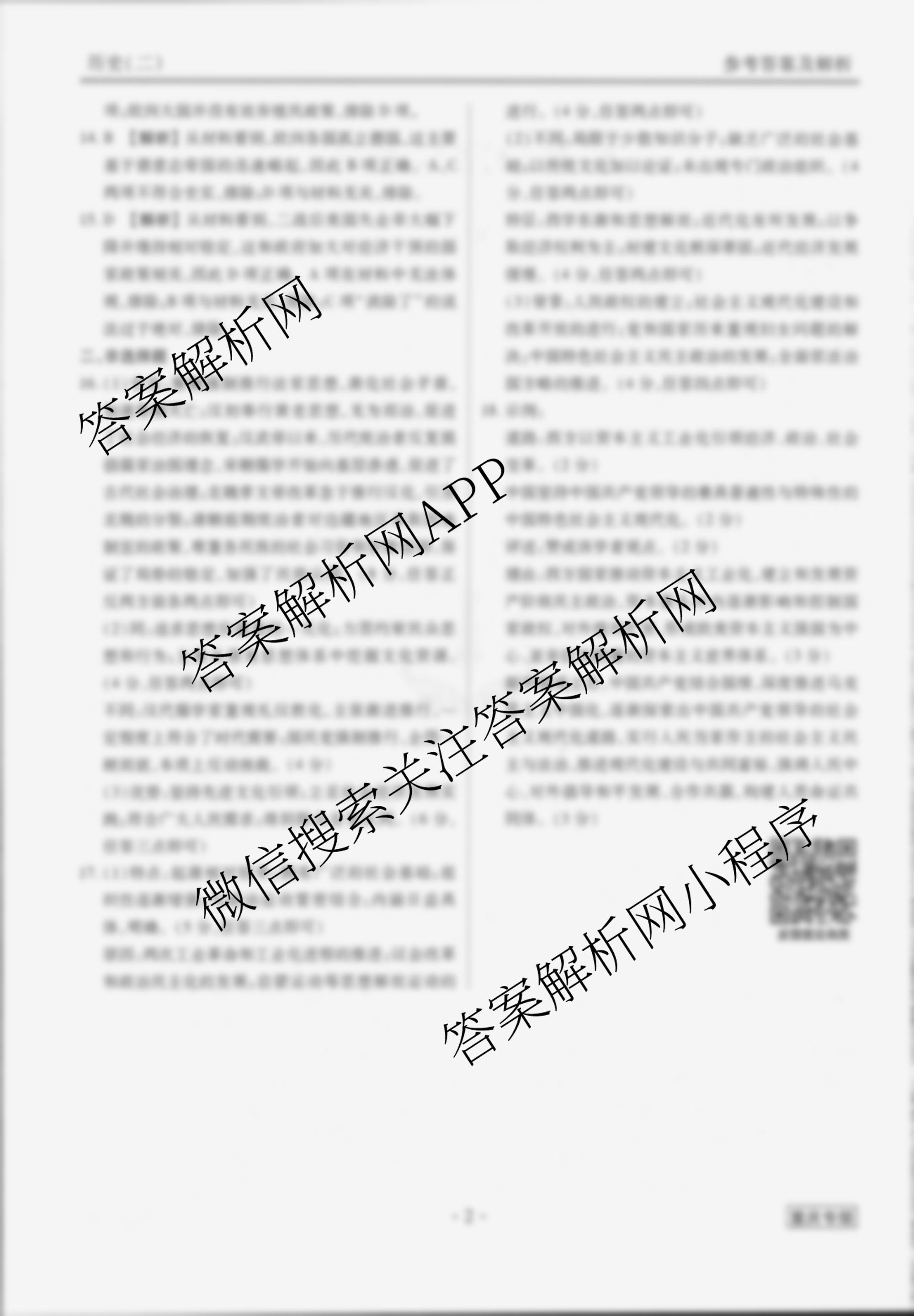 - [衡水金卷先享题]调研卷 2024年普通高等学校招生全国统一考试模拟试题(二)2历史(老教材无脚标)答案