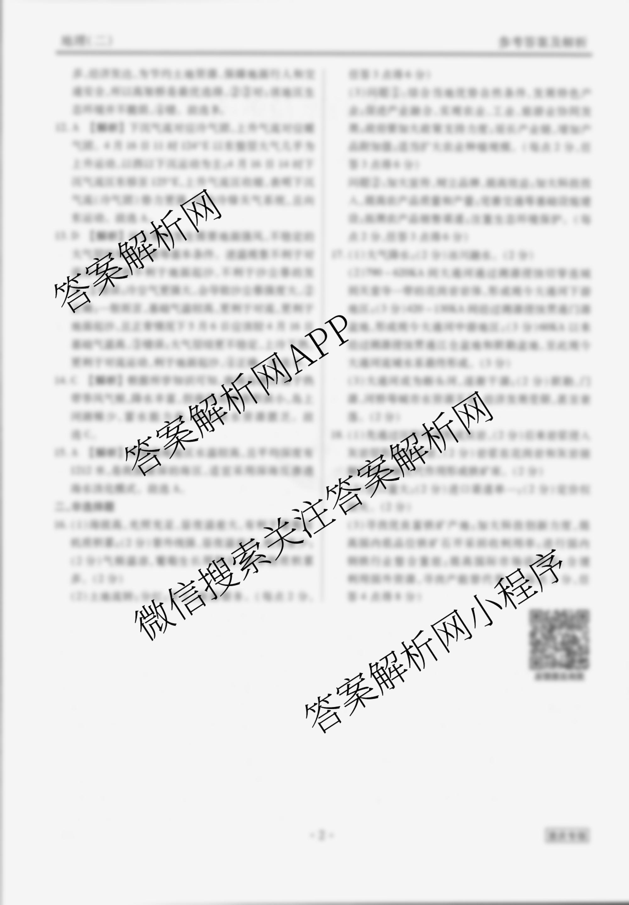 - (高三)(衡水金卷先享题)调研卷 2024年普通高中学业水平选择性考试模拟试题(二)2地理(湖北专版)答案
