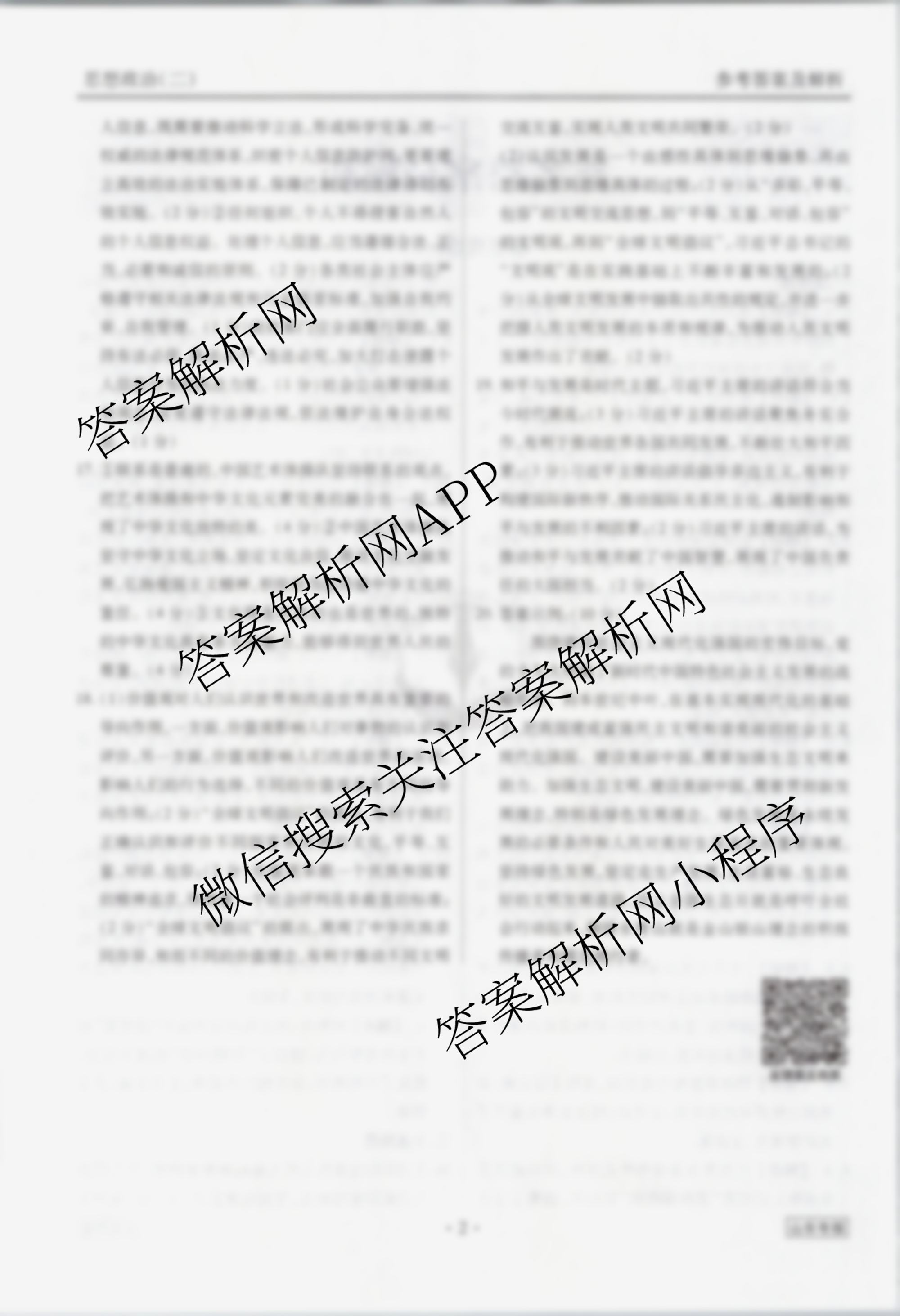 (衡水金卷先享题)调研卷 2024年普通高中学业水平选择性考试模拟试题(二)2政治(山东专版)答案