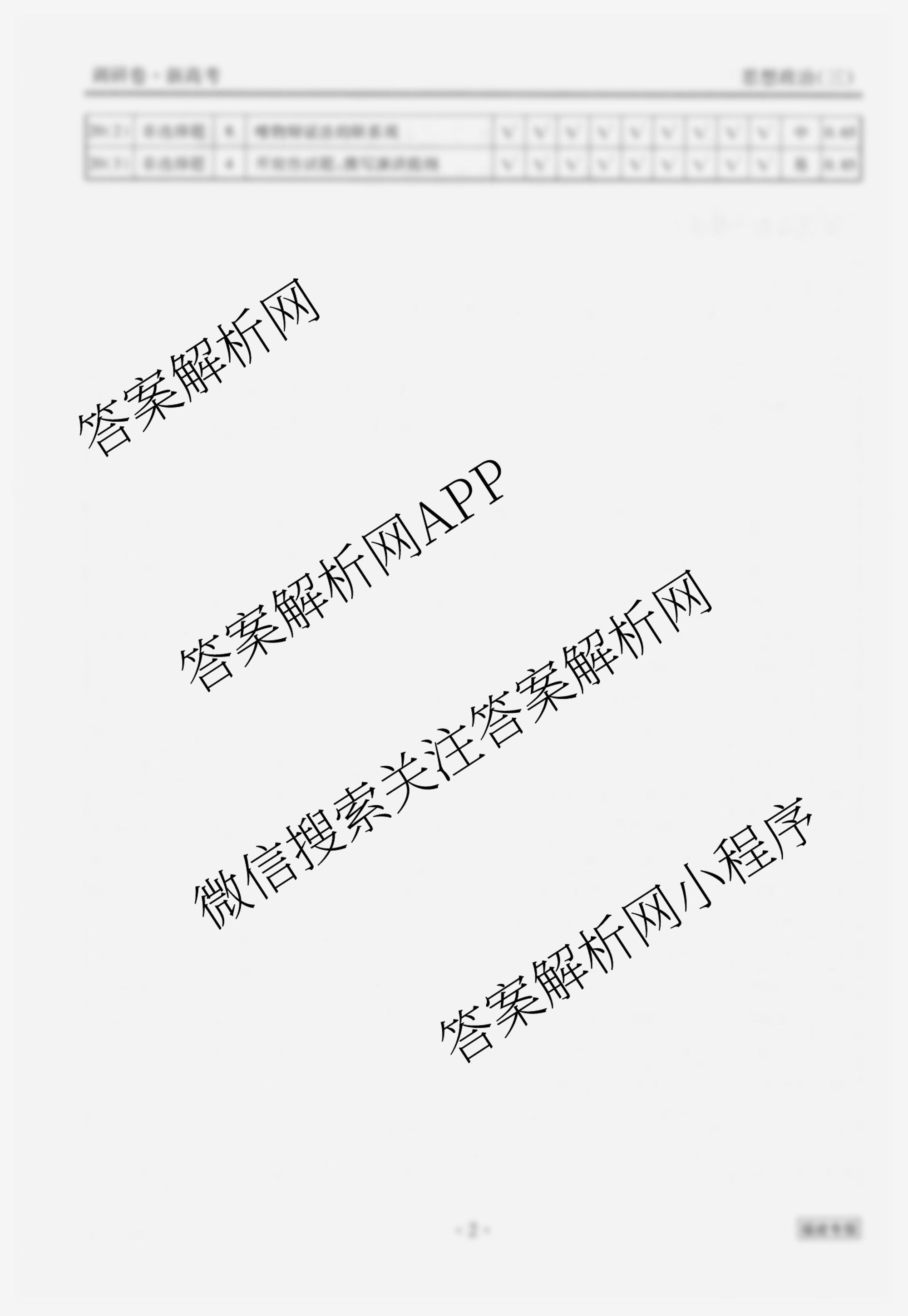 (高三)衡水金卷先享题调研卷 2024年普通高中学业水平选择性考试模拟试题(二)2政治(福建专版)答案