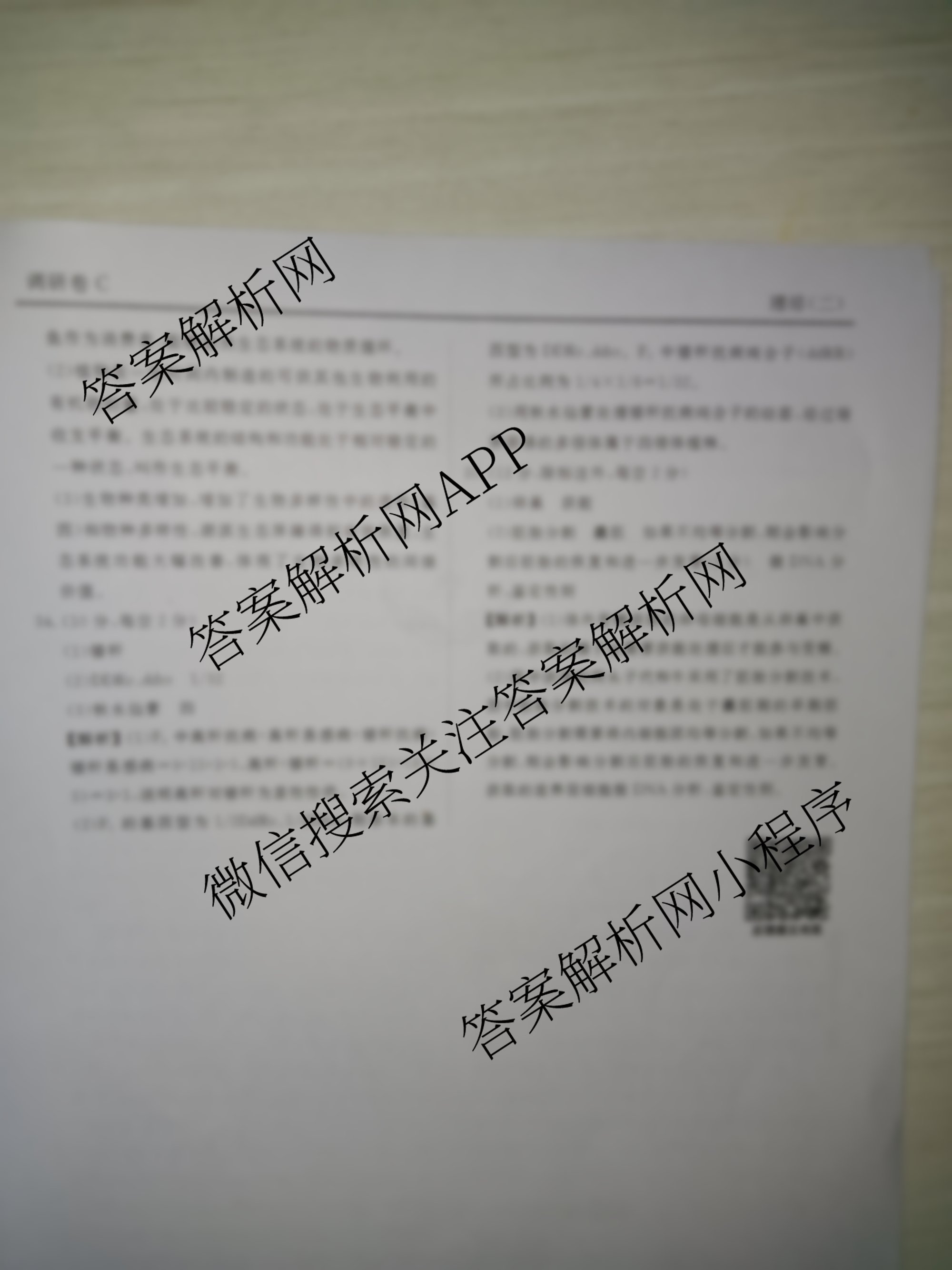 [衡水金卷先享题]·调研卷 2024年普通高等学校招生全国统一考试模拟试题(二)2理综(新教材C)答案