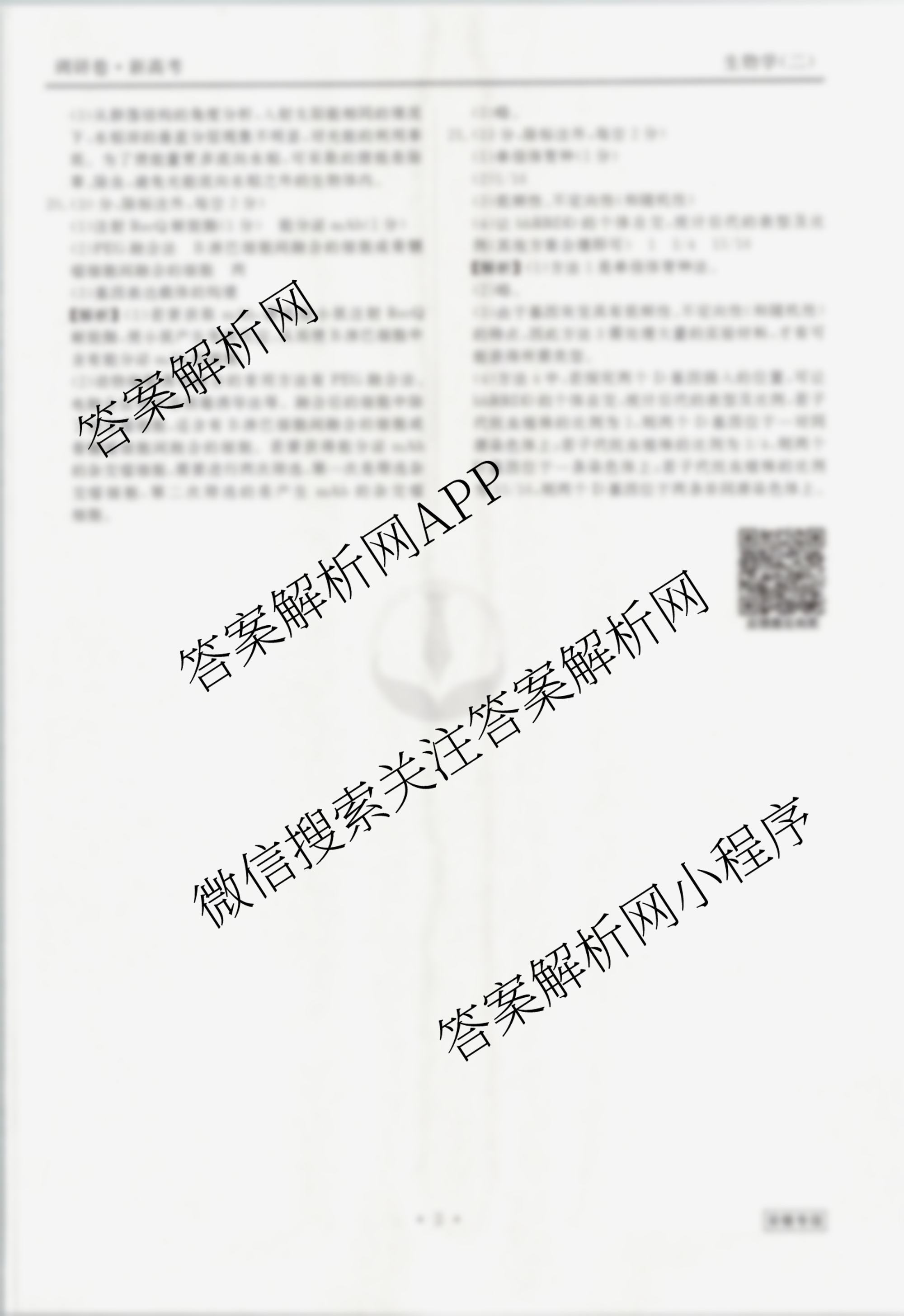 [衡水金卷先享题]·调研卷 2024年普通高中学业水平选择性考试模拟试题(二)2生物(安徽专版)答案
