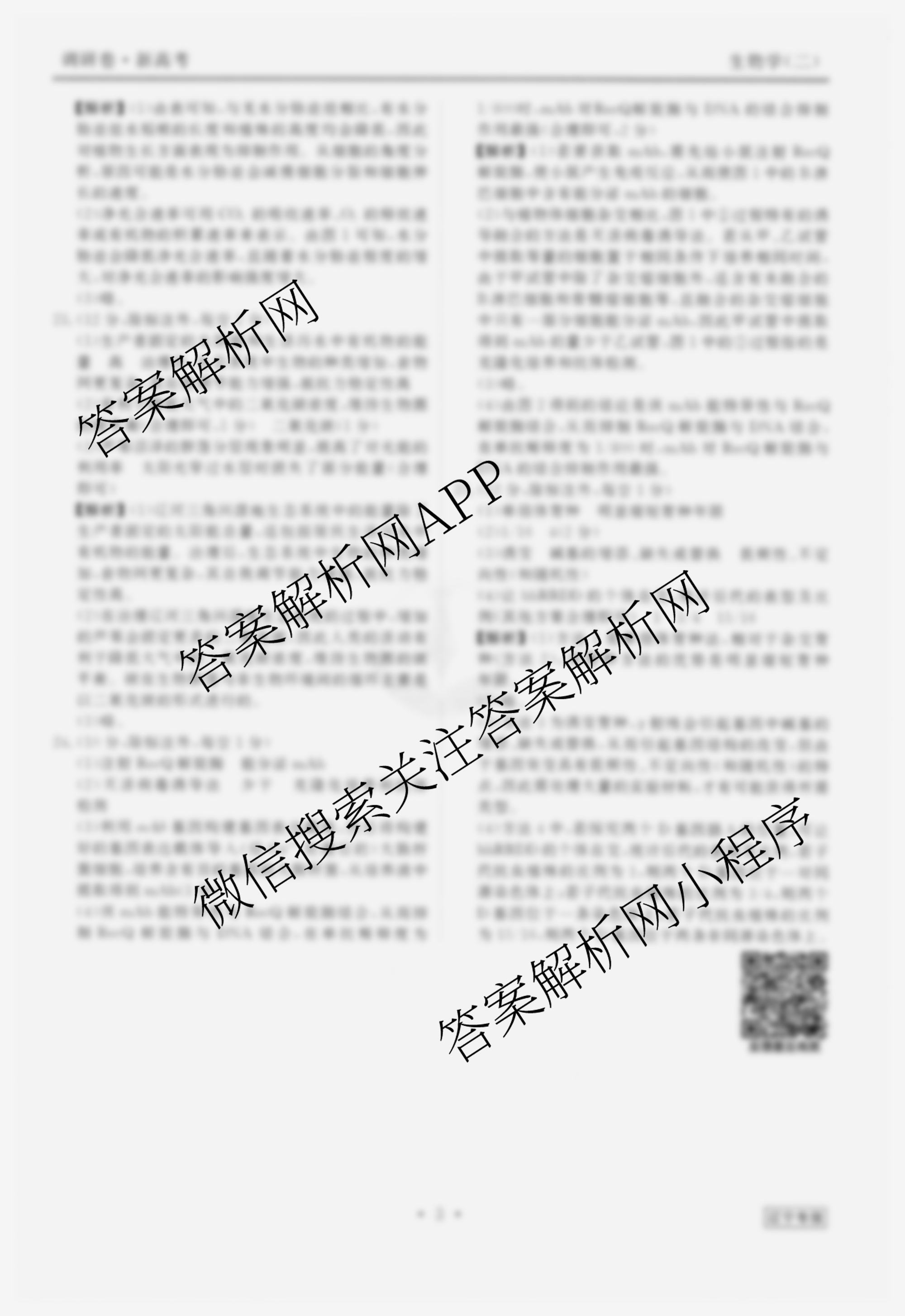 [高三](衡水金卷先享题)·调研卷 2024年普通高中学业水平选择性考试模拟试题(二)2生物(辽宁专版)答案