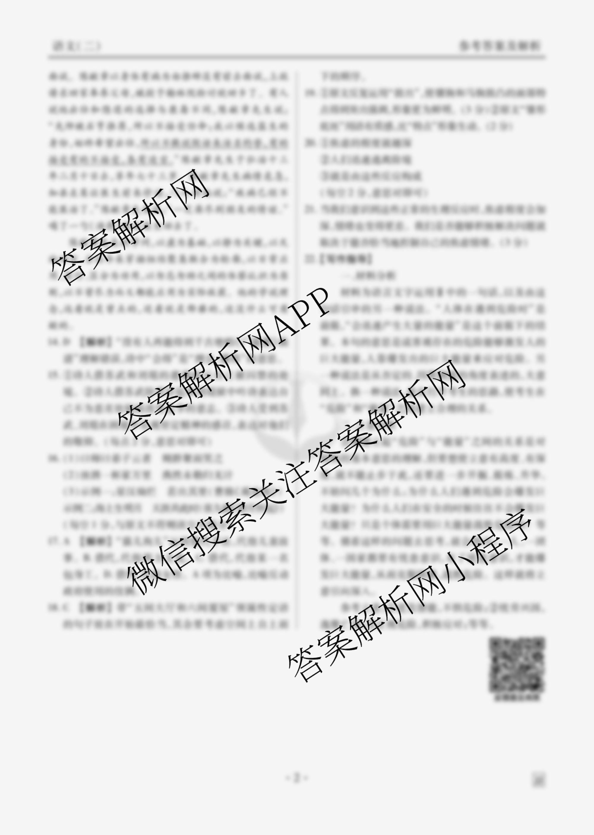 [衡水金卷先享题]调研卷 2024年普通高等学校招生全国统一考试模拟(二)2语文(JJ)答案