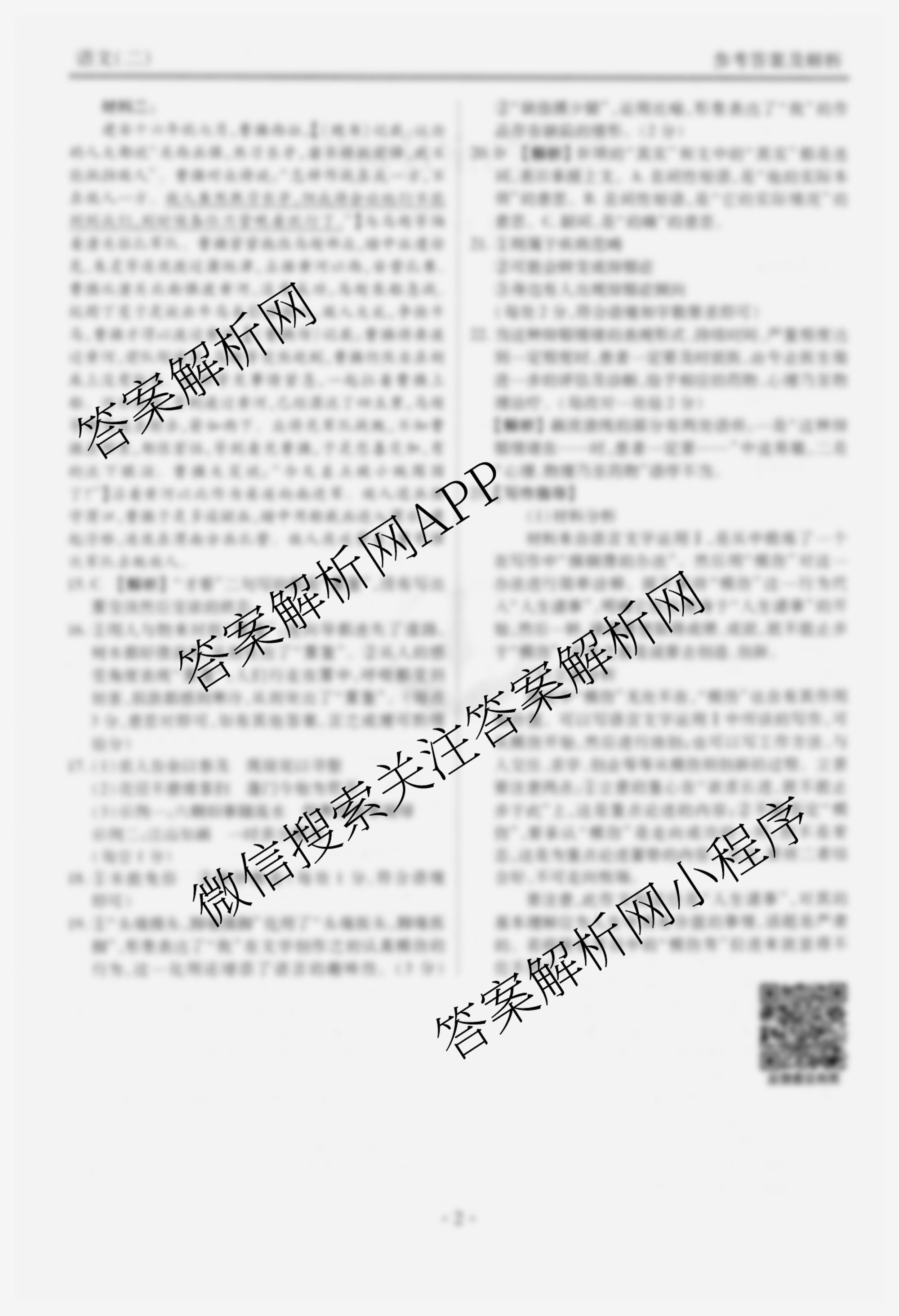 高三[衡水金卷先享题]调研卷 2024年普通高等学校招生全国统一考试模拟试题(二)2语文(无脚标)答案