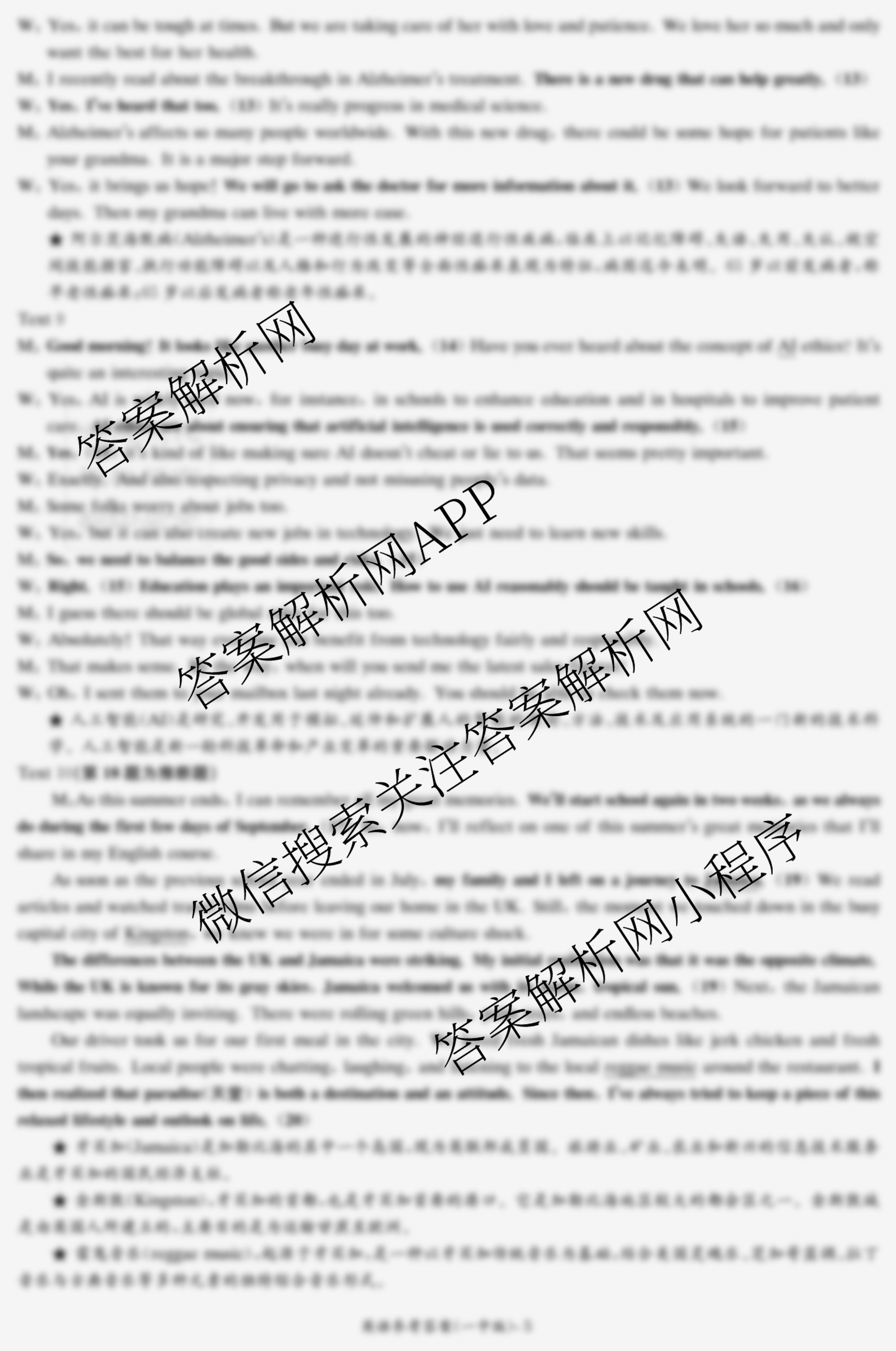 - [炎德英才大联考]长沙市一中2024届[高三]学生自主检测试卷英语答案