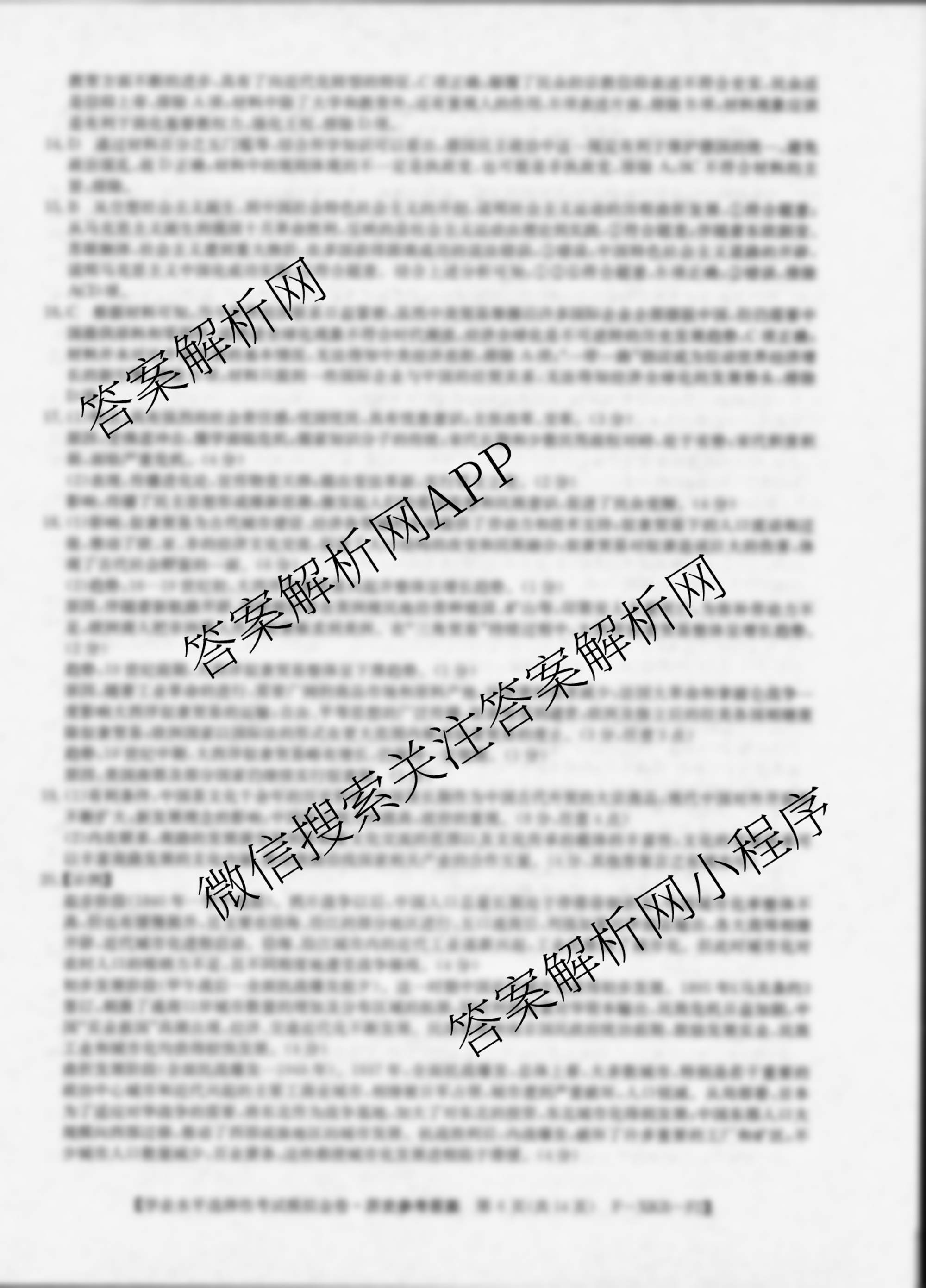 - [高三]XKB-LN·2024届(普通高中学业水平选择性考试模拟金卷)(三)3历史(F-XKB-LN)答案