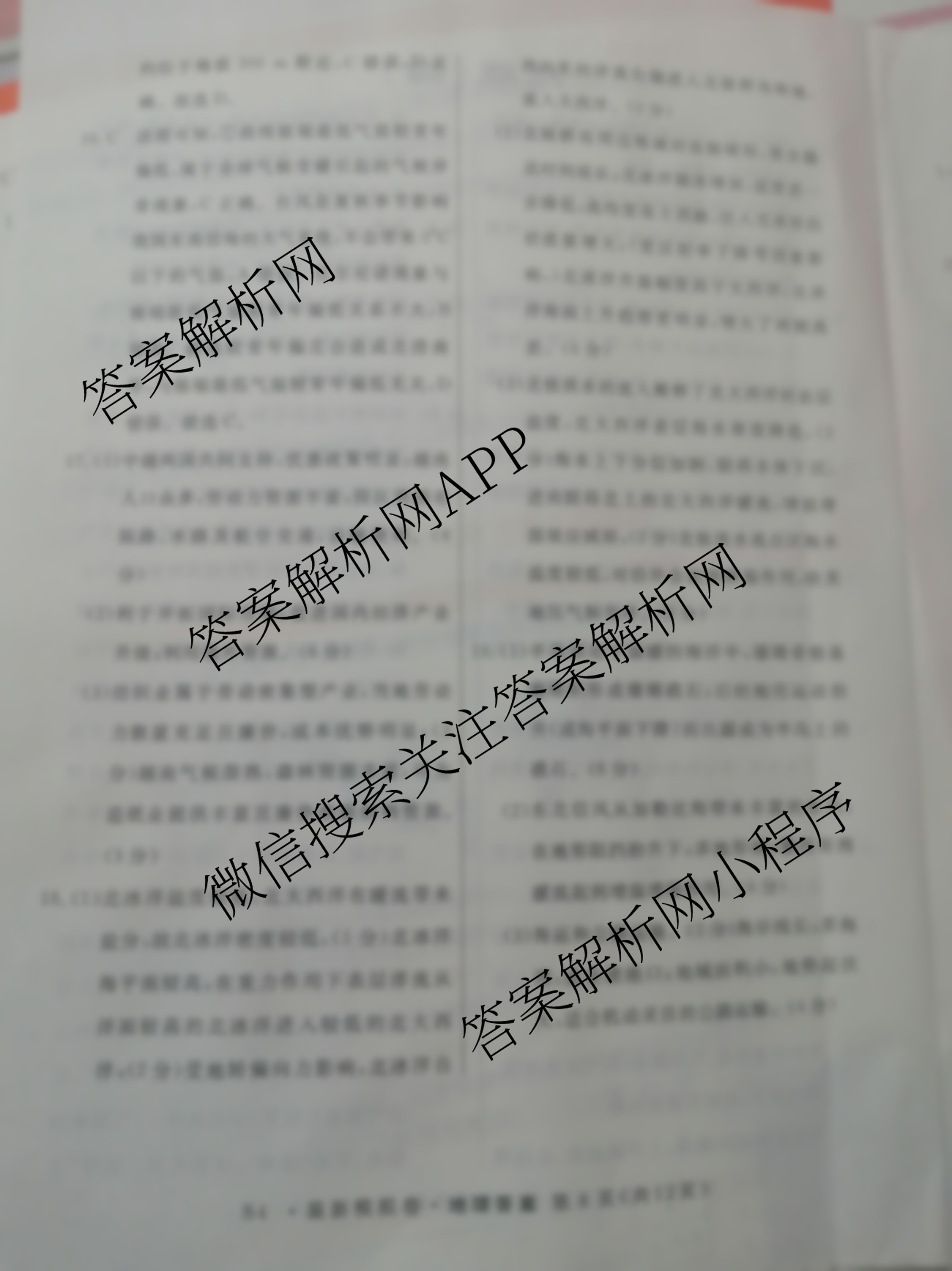 - 2024年普通高等学校招生统一考试最新模拟卷·地理(AH4)(四)4答案