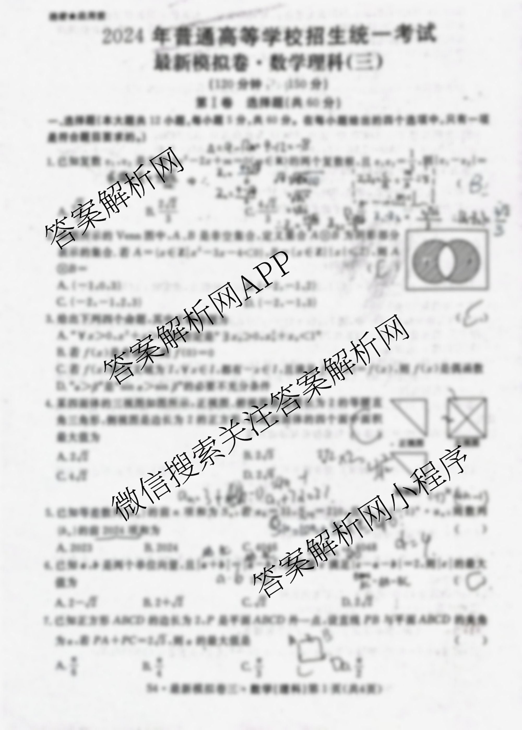 - [高三]2024年普通高等学校招生统一考试最新模拟卷·数学(新S4)(三)3答案