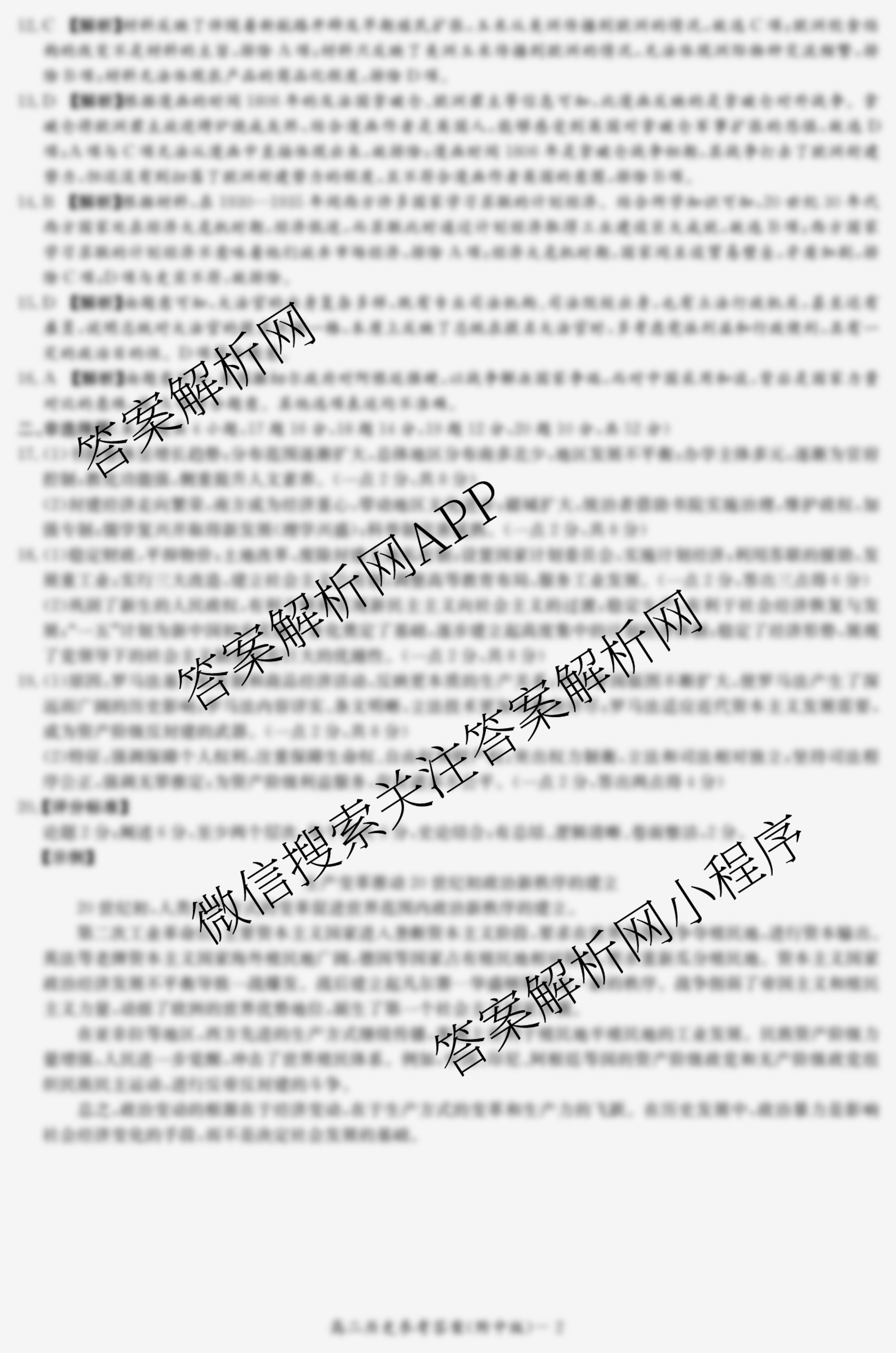 - 2023-2024[炎德英才大联考]·湖南师大附中学年度[高二]第一学期期末考试历史答案