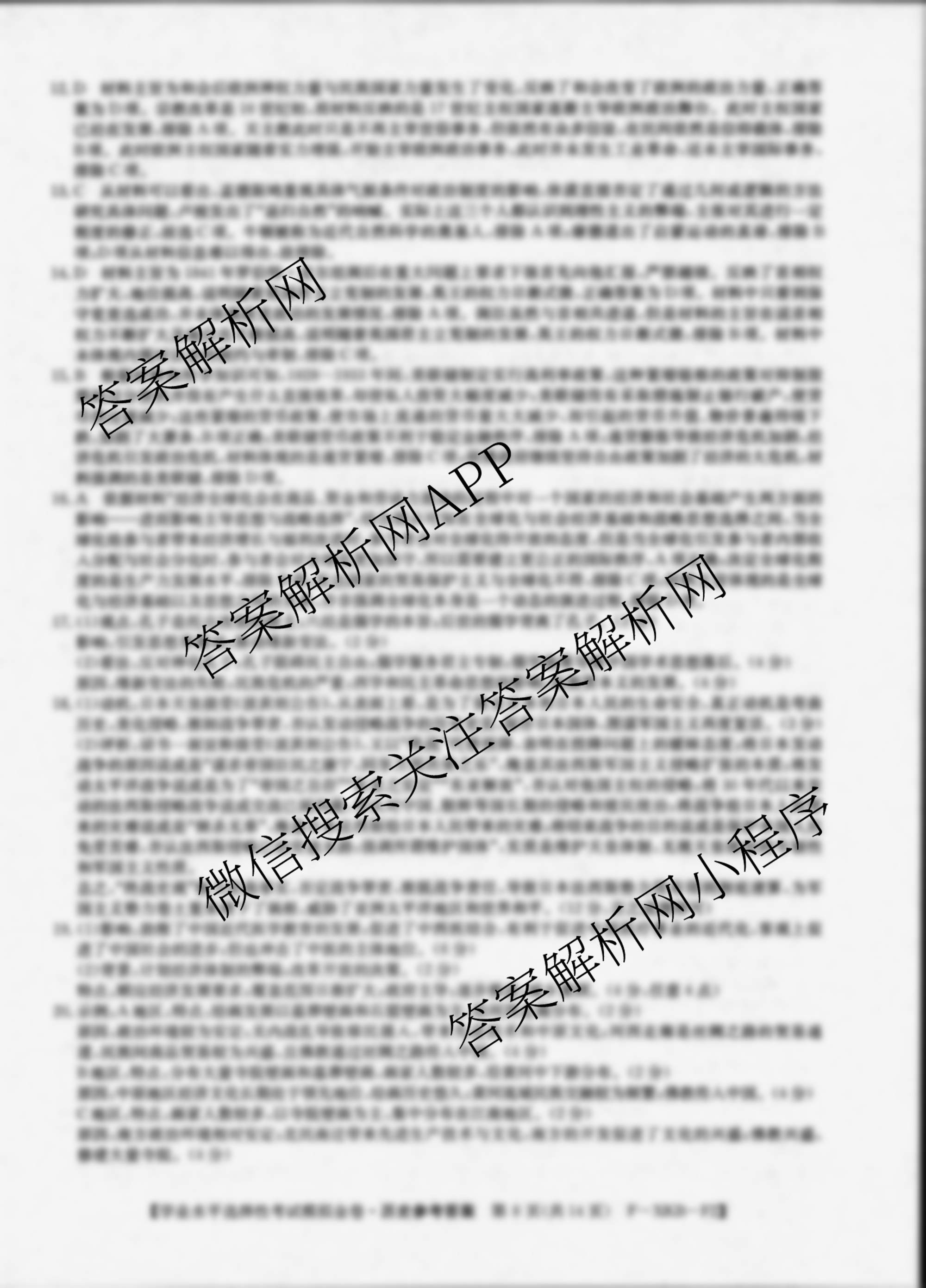 - 2024届[高三]XKB-F3普通高中学业水平选择性考试模拟金卷(四)4历史(F-XKB-F3)答案