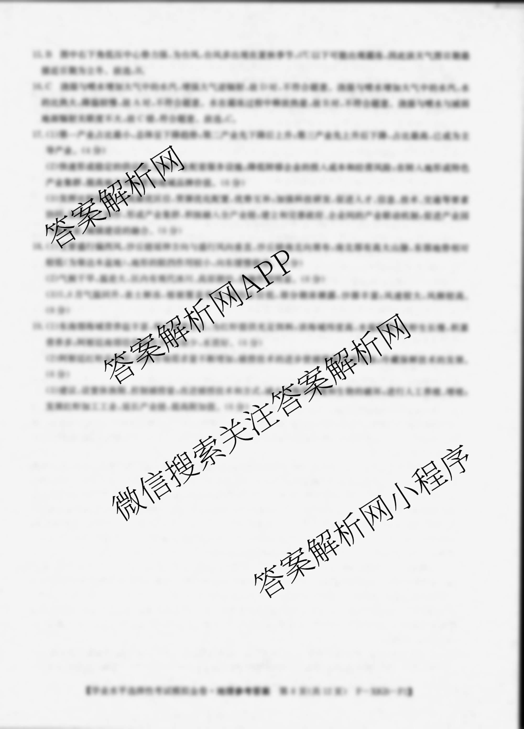 - 2024届(高三)XKB-F1·(普通高中学业水平选择性考试模拟金卷)(四)4地理(F-XKB-F1)答案
