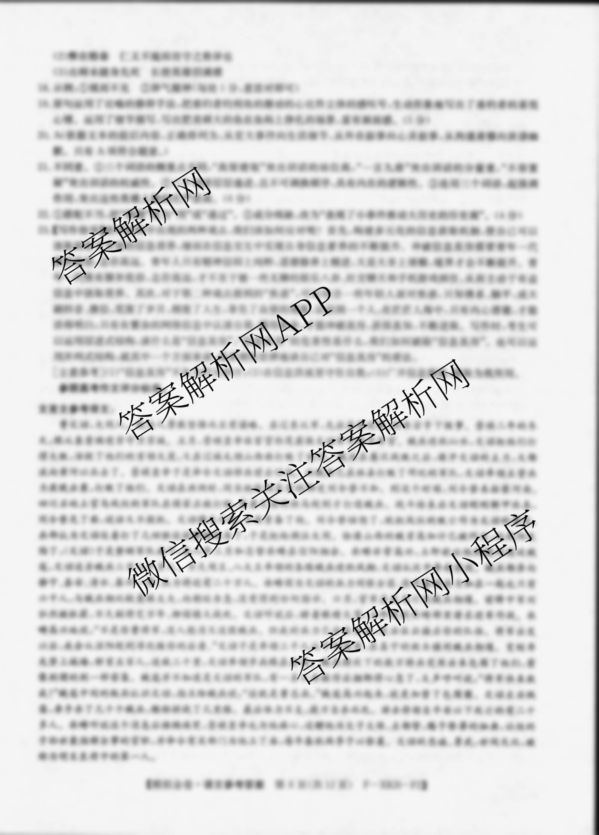 - XKB-F12024届普通高等学校招生全国统一考试模拟金卷(四)4语文(F-XKB-F1)答案