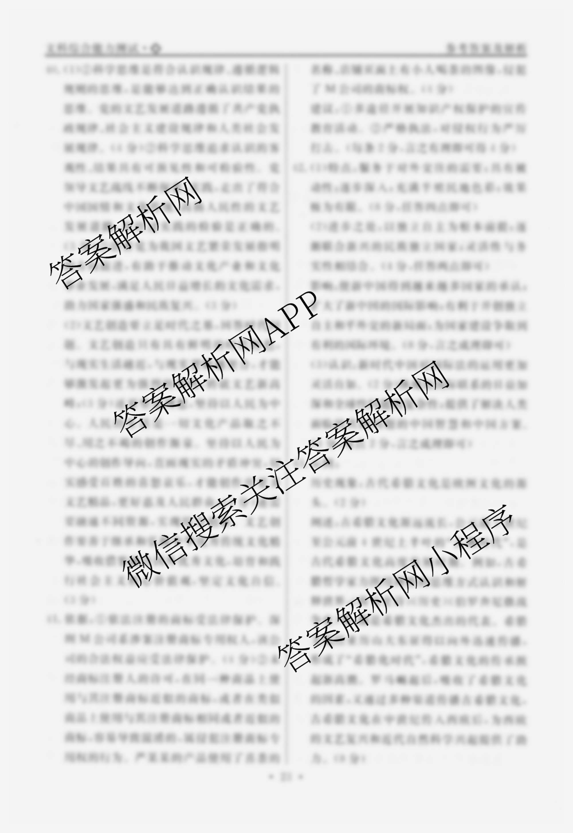 (高三)衡水名师卷高考模拟调研卷 2024年普通高等学校招生全国统一考试模拟试题 文综(空心◇)(四)4答案