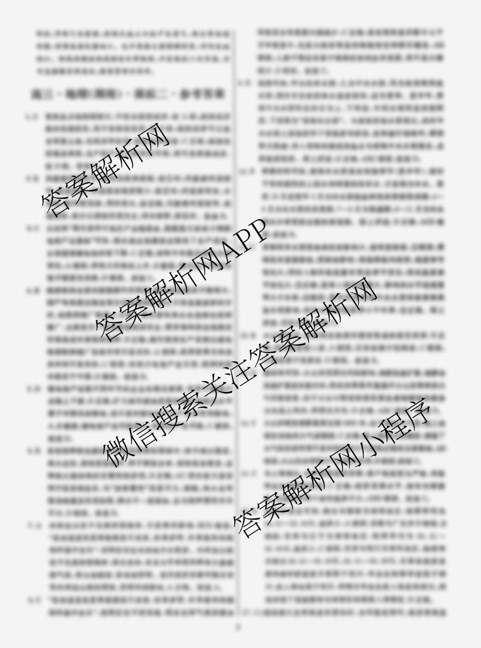 - 2024届[高三]黄冈八模地理模拟测试卷(辽宁)(一)1答案